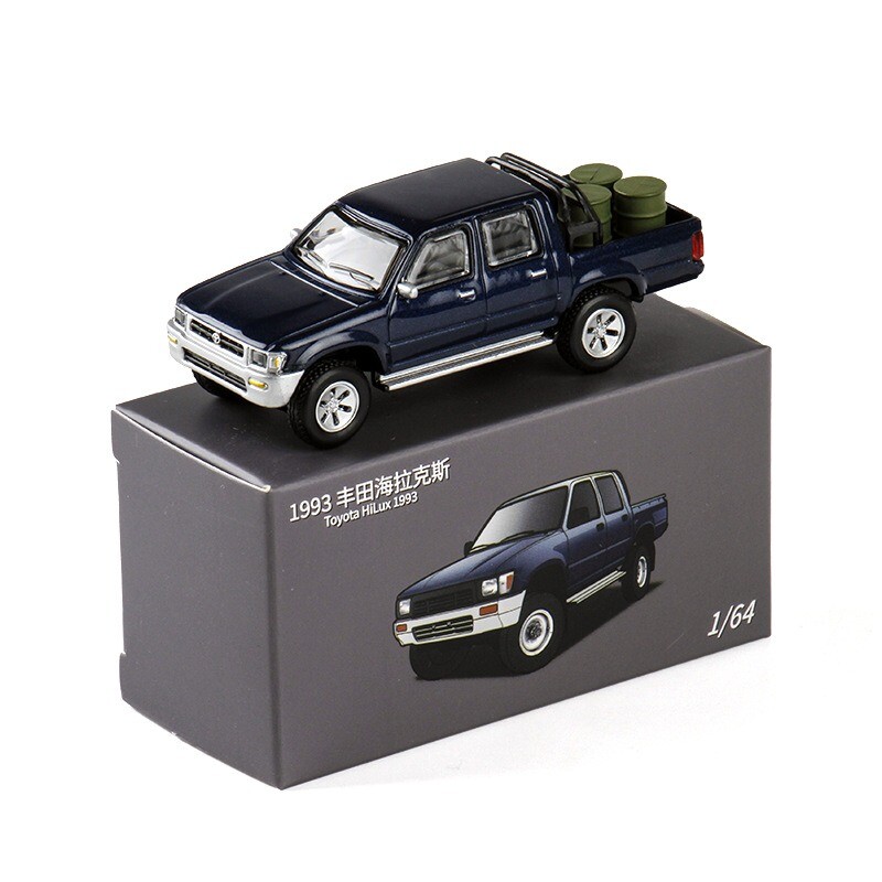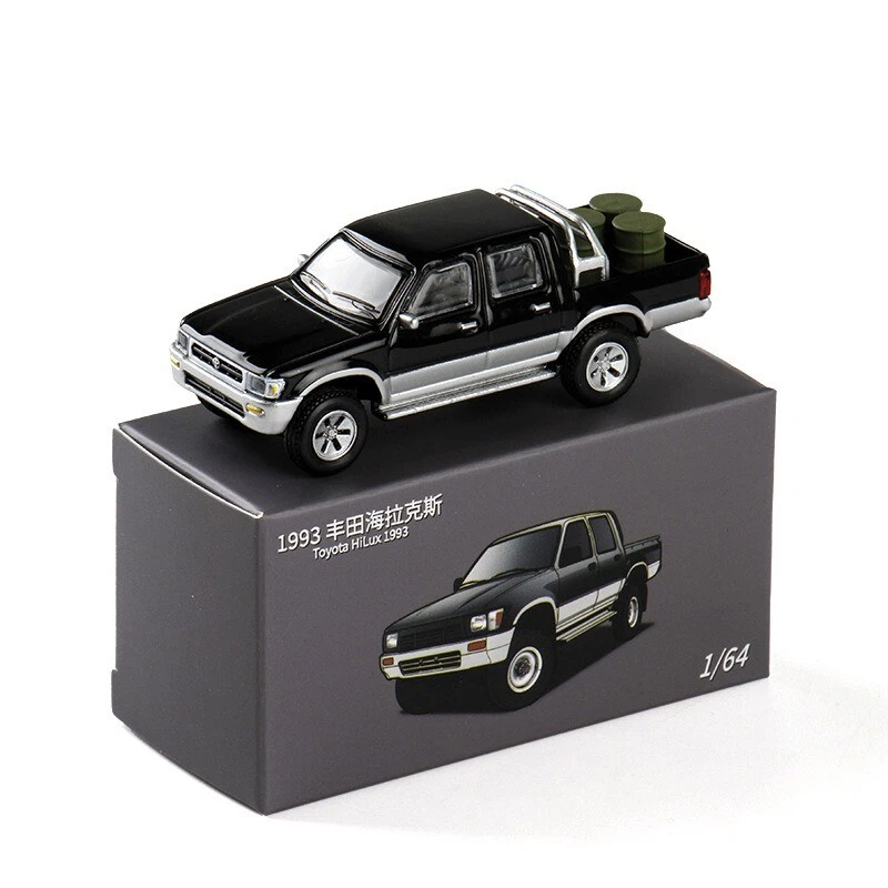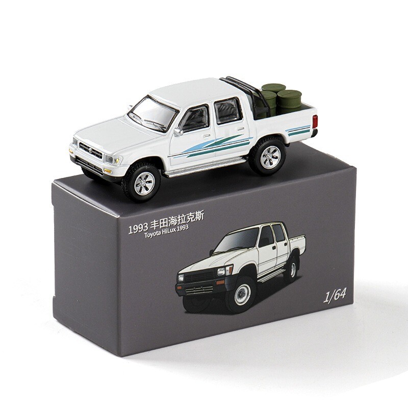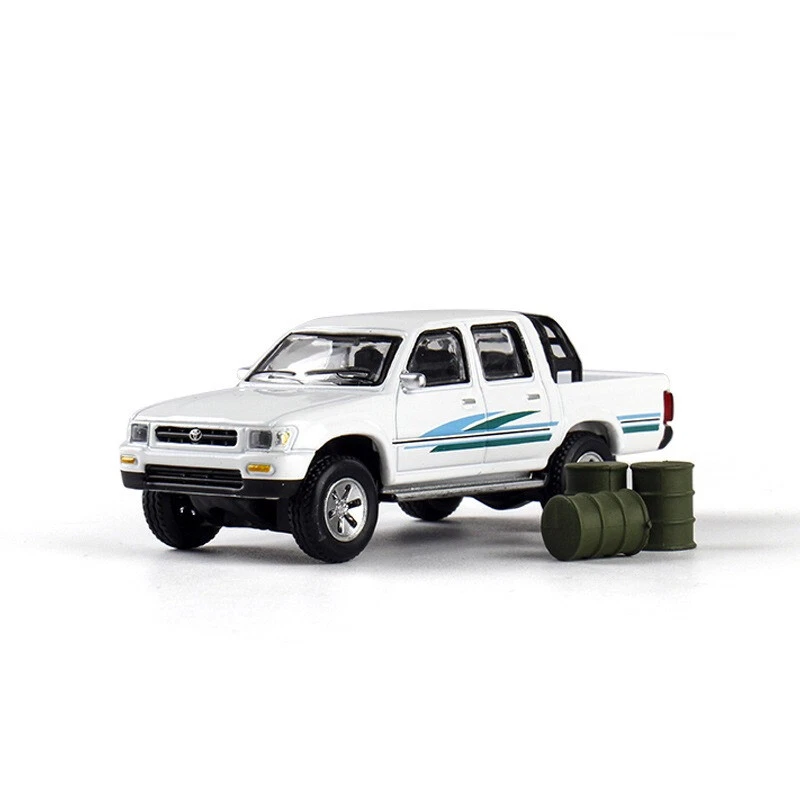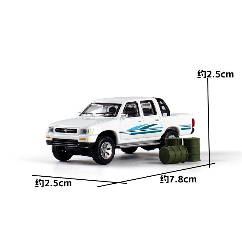 Item Type Diecast & Toy Vehicles > Cars, Trucks & Vans Scale 1:64 Material Metal, ABS and Rubber Dimension L3.1" * W1.1" * H1.1"/ L7.9 * W2.8 * H2.8 cm Color Green, Red and White Vehicle Type Pickup Truck Specifics 1) Free wheels 2) Wheels with suspension effect Packaging Packed not in original box Notice 1) Due to manual measurement, please allow a little error 2) Due to different monitors, the picture may not reflect the actual item Package include 1 x Toyota Hilux 1993 Model Car