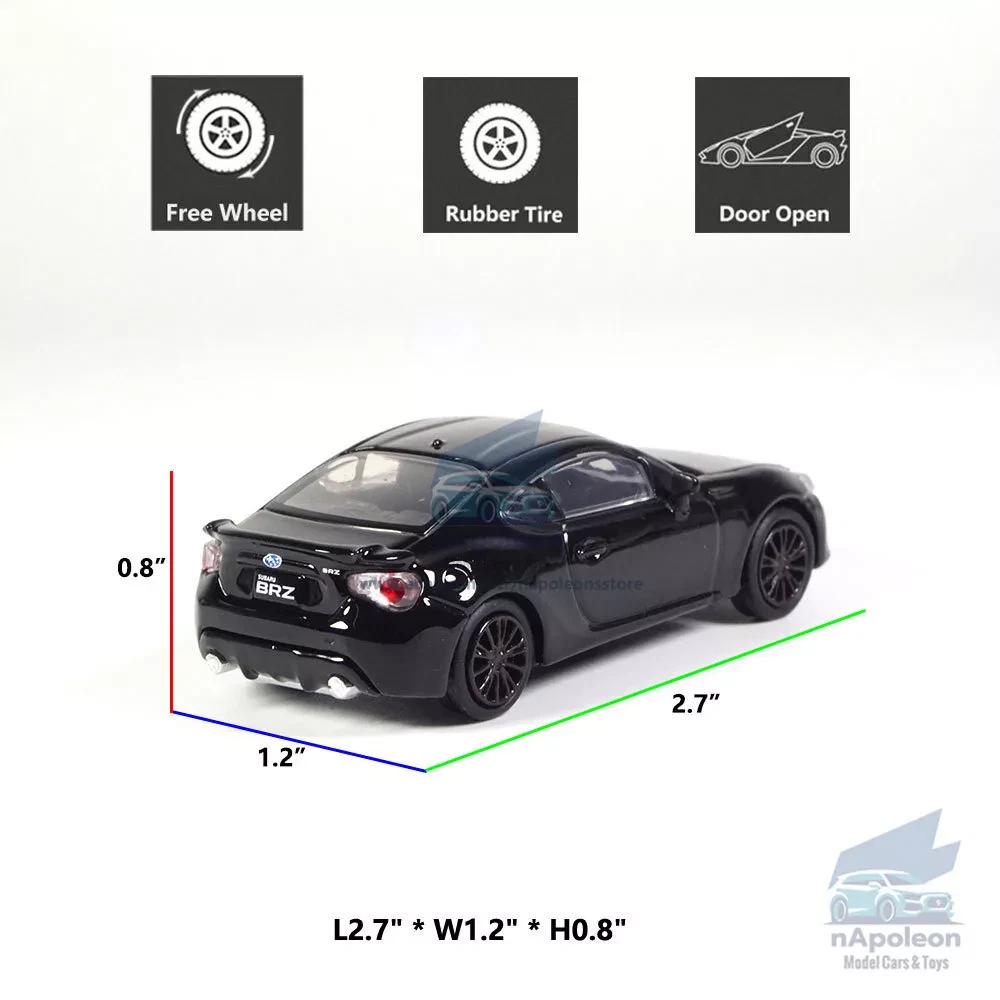 Item Type Diecast Model Vehicle Scale 1:64 Material Metal, ABS and Rubber Dimension L2.7" x W1.2" x H0.8" /L6.8 x W3.0 x H2.0 cm Color Black Vehicle Type Sports Car/ Coupe Specifics 1) Free wheels Packaging Packed in original color box, in excellent condition Tips Great choice of gift for kids, especially for Birthday, Christmas and New Year Gift Great item for collector, business gift, home decoration, office decoration, display Notice 1) Due to manual measurement, please allow a little error 2) Due to different monitors, the picture may not reflect the actual item Package include 1 x Subaru BRZ 2020 Model Car
