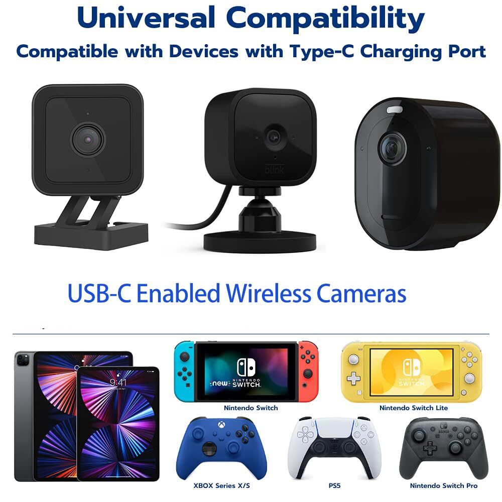 16.4Ft/5M Long USB C Cable, Durable USB A to USB C Charging and Data Sync Cord, Power Extension Cable for Any USB-C Enabled Security Cameras Phones Tablets Switch Pro Controller and More(Black) [USB A to USB C]---USB A to USB C extension power charging and data sync cable. Cord length: 16.4Ft/5 Meters. Power out: 5V 2.1A. Support power charging and data transfer. [Wide Compatibility]---Connects USB-C enabled security cameras or other devices (Phones, Tablets, Switch Pro Controller, etc.) with standard USB-A enabled devices (Laptops, Power Banks, Wall Chargers, etc.) Easily insert the Type-C connector into any Type-C enabled device (does not matter which side is up). [16.4Ft/5M Extra Long]---Power your cameras and more devices at a long distance up to 16.4Ft/5 meters. Good replacement for your original short USB-C cable that come with your wireless cameras and other USB-C devices. Make daily life more convenient for fast and stable charging and data transfer for a long distance. [Endurable Cord]---With high-quality and durable copper conductors and premium design, it can achieve fast and stable charging and data transmission, with a maximum current up to 2.1A. Recommend to use 5V 2A power supply. All the cables are produced under rigorous quality control procedures to ensure safe, reliable operation for years to come. [Worry-Free]---Premium Design, Plug and Play, Durable and Stable, 1-Year Warranty, Lifetime Technical Support. Notice: This cable is USB-A to USB-C, NOT USB-C to USB-C. [USB A to USB C]---USB A to USB C extension power charging and data sync cable. Cord length: 16.4Ft/5 Meters. Power out: 5V 2.1A. Support power charging and data transfer. [Wide Compatibility]---Connects USB-C enabled security cameras or other devices (Phones, Tablets, Switch Pro Controller, etc.) with standard USB-A enabled devices (Laptops, Power Banks, Wall Chargers, etc.) Easily insert the Type-C connector into any Type-C enabled device (does not matter which side is up). [16.4Ft/5M Extra Long]---Power your cameras and more devices at a long distance up to 16.4Ft/5 meters. Good replacement for your original short USB-C cable that come with your wireless cameras and other USB-C devices. Make daily life more convenient for fast and stable charging and data transfer for a long distance. [Endurable Cord]---With high-quality and durable copper conductors and premium design, it can achieve fast and stable charging and data transmission, with a maximum current up to 2.1A. Recommend to use 5V 2A power supply. All the cables are produced under rigorous quality control procedures to ensure safe, reliable operation for years to come. [Worry-Free]---Premium Design, Plug and Play, Durable and Stable, 1-Year Warranty, Lifetime Technical Support. Notice: This cable is USB-A to USB-C, NOT USB-C to USB-C. Shipping from the USA All of our products are shipped from the USA, ensuring quick delivery to your destination. Payment We offer the following payment methods: PayPal, credit card, bank transfer, and eBay's secure payment system. Free Shipping & Free Returns Shipping within the USA is FREE. Additionally, any return is absolutely free for you. Risk-Free Purchase You have the option to return an item within 30 days without any justification. We cover the return shipping costs! Fast Shipping We ship immediately upon receipt of payment. Generally, the package is delivered within 2-3 days in the USA. If it takes longer, we will contact you. Quality and Costs Made in Europe, USA, China No customs fees or additional charges Total satisfaction guarantee Invoice with declared VAT available upon request in .pdf format Feedback Your feedback is very important to us. After you pay for your purchase, you will automatically receive positive feedback from us.