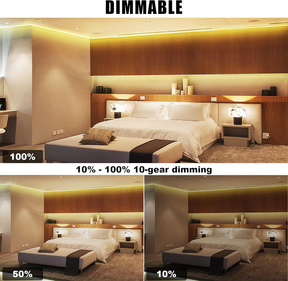 Store New Arrivals Add to Favorite View Feedback Contact White COB Led Strip Lights Max with RF Remote, 16.4Ft 3000K Dimmable Ultra Bright Warm White COB Light Strip, Adhesive Indoor COB Led Lights for Living Room, Shelf, Cabinet Description Light Source Type LED Item model number LSSCOBX38420W Style Traditional Number of Items 1 Power Source AC/DC Number of Light Sources 1920 Control Method Remote Warranty Description 3 years manufacturer. Product Dimensions 196.8 x 0.31 x 0.09 inches Theme Christmas day, Thanksgiving day, Party Batteries Included? No Usage Indoor use only Controller Type Remote Control, Button Control Connectivity Protocol Radio Frequency Wireless Communication Technology Radio Frequency Material vinyl, metal, ceramic, Silicone Seasons winter Form Factor Flexible strip Included Components User Manual, Dimmer, COB LED Strip Light, Remote, 24V/1A Power adapter (Not support battery powered) Item Package Quantity 1 Item dimensions L x W x H 196.8 x 0.31 x 0.09 inches White Brightness 3120 Lumens Indoor/Outdoor Usage Indoor Country of Origin China Light Color White Water Resistance Level Not Water Resistant Batteries Required? No Item Weight 1 pounds Connectivity Technology Radio Frequency Occasion Christmas day, Thanksgiving day, Party Special Features RF remote control, Timer setting, Scenes options, Powered on last setting, Dimmable 10-100% Special Feature RF remote control, Timer setting, Scenes options, Powered on last setting, Dimmable 10-100% Color Temperature 3000 Kelvin Color 3000K-Warm White Wattage 24 watts Voltage 24 Volts (DC) Plug Format US Luminous Flux 3120 Lumen Size 16.4ft Ultra Bright Uniform light: Special technology rises the lumens efficiency up to 130lm/w makes the brightness 24W=36W, the diodes cover yellow odorless and safe silicone material makes light strips more uniform and bright, not shine your eye Create Linear Effect:Came with 1920 pcs diodes/16.4ft light strip, no more light dark areas, not reflected off the dark tile or polished counter, great for cosplay effects and model makers Easy to DIY: Flexible and cuttable COB light strip with strong adhesive tape, and 8.2ft wire lead from power supply to light strip, makes easy to bend angle to install and decorate (Do not stick on frosted glass, dusty wall, rough plastic surface, wool fabrics) Dimmable: The COB rope light adjust 10-100% brightness makes room more Inviting Widely Used: The COB strip light is great ideal for vanity mirror, stair, bedroom, cabinet, kitchen counters, living room, display case Multiple Functions: Power on last setting, adjust brightness, timer setting, scenes options How to solve the light strip auto turn on or turn off: Pair the remote with controller, hold the 10% and 50% button at the same time for 3s, and then release the button, the light strip will flash, successful Product Description COB Led Strip Light Kit Tatazone Soft glow light for your room(Not support Battery Powered). Brightness of 24W=36W Energy Saving 130lm/w high lumen output illuminate your entire room, perfect for living room, bedroom, kitchen, cabinet, shelf, closet, desk, frame. Safe to use Operating on 24V Certified Power Supply Came with US safety standards and regulations power supply, comply with safe radiation standards. Set timer to turn off led cob strip automatically Pairing the Remote with Dimmer One remote to control all this tatazone COB led strip kit, or pairing remote for controlling one. 8.2ft Wire From Adapter to Led COB Strip Extended the cable length of dimmer makes your installation without limits, use button control easy. 1920 Led's Spread over the COB Light High density of led's covered silicone material makes the light soft and uniform. 1 Concern Safety 2 Timer 3 Pairing Mode 4 Ultra Long Wire 5 High Density Led Strip Know more about the RF remote · How to solve the light strip turn on randomly? Pair the remote to the dimmer, problem will solve. · Wireless control via RF remote, no needs to point at the controller when you control the COB light strip. · The RF signal can pass through obstacles compare to IR remote. · Multiple functions: timer setting, adjust brightness 10-100%, scenes option, pairing mode. · Sensing Distance: 49.2ft. Warning: DO NOT ROLL UP THE LIGHT STRIP WHEN USING, spread out the led strip before connect the power supply. If the light strip roll up when lighting up, the light strip unable to dissipate heat. How to make the adhesive tape more sticky? 1. Do not stick to dusty wall, rough plastic surface, frosted glass, knitted/wool fabrics. 2. Choose a dry,clean and smooth surface. 3. In low-temperature environments, please use a hair dryer to warm up the tape. Does the light strip could be memorized last setting after turned off the light? Yes, the cob led will remember your setting when COB led powered off. How to solve the light strip turn on and off randomly, or dimming on it's own, randomly flashing? The problem came with other remote control signal interference, hold the 10% and 50% button at the same time for 3s, and then release the button, the light will flash, the problem solved. Technical Data of COB Led Strip Voltage 24 Vdc Power Rated 24W Color Temperature 3000K-Warm White Led Quantity 384 LEDs/m-1920pcs/16.4ft Light Efficiency 3120lm/16.4ft-130 lm/w CRI >88+ SDCM ≤6 IP Level 50 Cutting Size 1.65in/42mm Length of Light Strip 1*16.4ft/5m Width 0.31in/8mm (Matching 8mm 2 PIN COB connector) Included 1 x 16.4ft/5m COB Strip Light 、1 x 24V Power Supply、1 x Dimmer 、1 x User Munual、RF Rmote Battery Powered Not Support Tatazone Led COB Strip Light Kit Add to Cart Add to Cart Add to Cart Add to Cart Add to Cart Add to Cart Customer Reviews 4.3 out of 5 stars 240 4.2 out of 5 stars 106 4.6 out of 5 stars 121 3.2 out of 5 stars 62 3.8 out of 5 stars 54 4.1 out of 5 stars 133 4.0 out of 5 stars 68 Price $47.99 $ 47 . 99 $33.99 $ 33 . 99 $25.99 $ 25 . 99 $45.99 $ 45 . 99 — $9.99 $ 9 . 99 $25.99 $ 25 . 99 Length 16.4ft 16.4ft 16.4ft 16.4ft 16.
