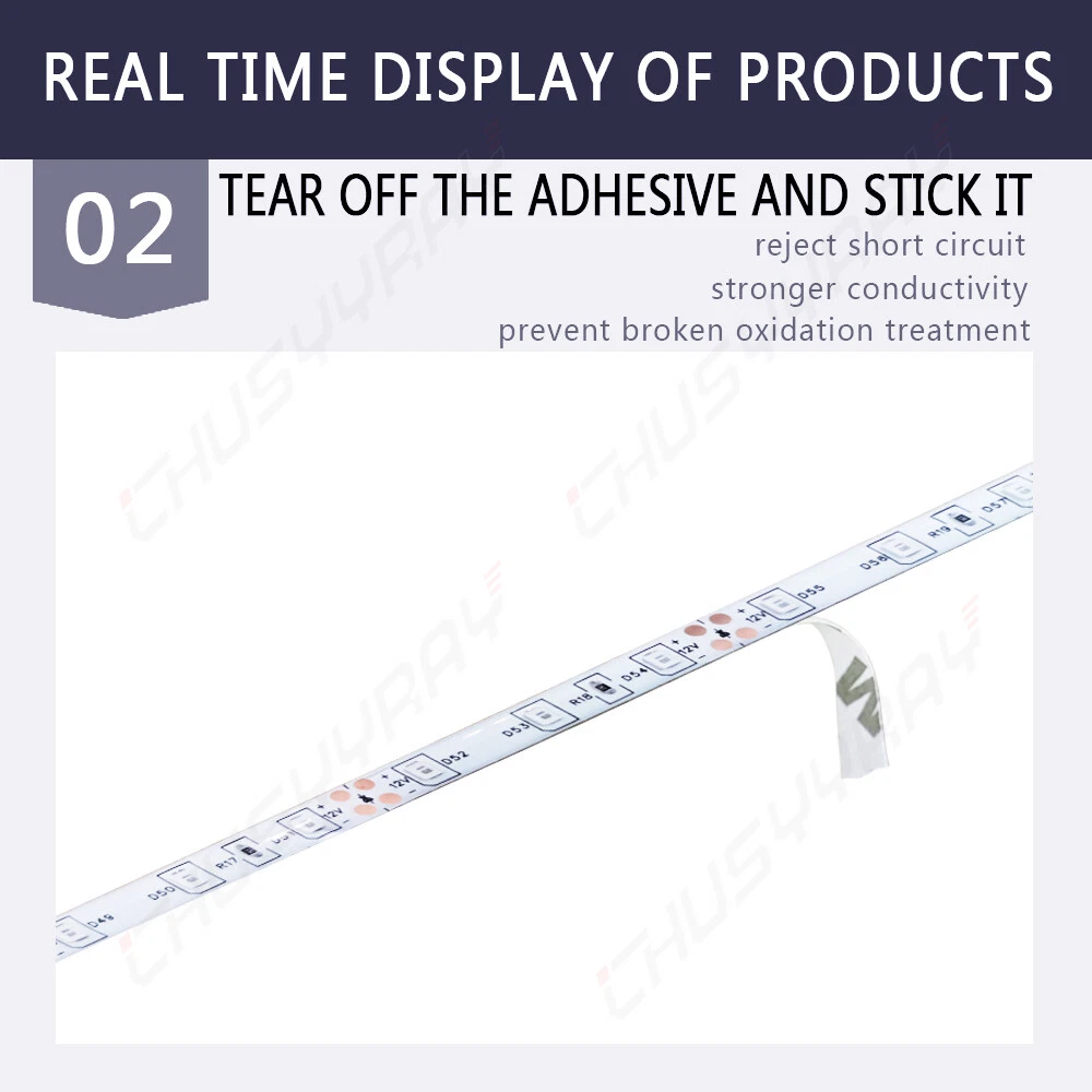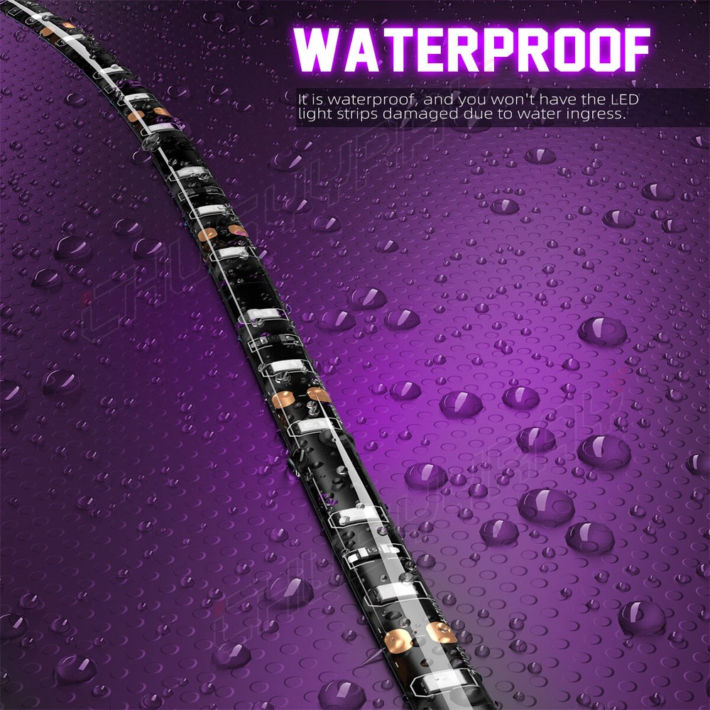 Note:Power adapter not included. About this item: Bright SMD 3528 LED Chip, high intensity and reliability Waterproof flexible LED strip (IP65 Waterproof level) 60 SMD LEDs per meter, total 300 LEDs for 5 meters (16.4 ft) Self-adhesive back with double side adhesive tape Every 3-LED cutable without damaging the rest strip Product Specification: Type: Flexible Strip Lights Colors: Purple Light Strip Length: 16.4 FT Light source: SMD 3528 Brightness: 95LM/W Light Source type: LED Number of Lights: 300 Power Source: Dc Input Voltage: DC 12V Power: 30W Beam angle: 120 degree Waterproof: Yes Life Span: About 50,000 hours Installation notes: - Select & clean desired place, stick on by the dbouble side adhesive tape of the light - Each strips come with 2 wires (positive(+) / negative(-), about 30cm length). - Use with any 12V DC Car, Motorcycle, any other vehicles, require clear connect to the (+)/(-) side. - If after correct installation and no light, simply try to reverse the polarity of the wire. Wide Rage of Application: 1、Widely for home decoration use, hotels, clubs, shopping malls, car industry. 2、 Architectural decorative lighting, boutique atmosphere lighting. 3、 Extensively applied in Backlighting, concealed lighting, channel letter lighting. 4、 Emergency & security lighting, advertisement sign. 5、 Decorative lights for holiday, event, show exhibition. 6、 Applicable for automobile and bicycle decoration, border or contour lighting. 7、 Soft texture, can be bent, can be arbitrarily fixed in the uneven places. 8、 Easy installation, behind the strip, are free to paste. 9、 Each group of three lights to form a loop, low current, low power, energy and beautiful. Three LED can cut an incision. 10、 Mainly used for car decoration, home decoration, lighting, signs, advertising signs, wine, jewelry cabinets, entertainment and other decorative lighting. Package Includes: 1x 16.4 ft RGB led strip (waterproof) 1 x Remote controller