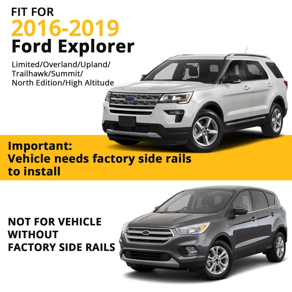 Specifications: Color:Black Load Capacity:165 Pounds Mounting Type:U-Bolt Material:Aluminum Is Foldable:No Features: 【Fitment】 Compatible for 2016-2019 Ford Explorer . Please check your vehicle's Year, Make and Model before purchase 【Maximize Your Car Capacity】 This crossbars bear a load of 165 LBS. Ideal for transporting items which won’t fit in your vehicle such as: roof bags, roof boxes, bike carriers, surfboards, kayaks, canoe, sporting goods, ladders, luggage and much more you want. 【Bring You Security & Durability】 The roof rack is made of Aluminum, anti-rust, base feet are made of high quality plastic. Aluminum is on average 30% lighter than steel. Our roof rack crossbars can withstand greater stresses than the best all-steel roof rack at 1/4rd less the weight. 【Less Noise & Lockkable】 Aerodynamic shape makes it effective to minimize wind noise. And the locking system keeps the bar secure and prevents theft. 【Easy To Assemble In Minutes】 The mounting rack install and secure with just a screwdriver, easily attaches to roof mounts without drilling. Labeled front and back so no guessing on which one goes where. The front crossbar is longer than the rear to accommodate vehicle size. Please read the installation manual before installing. Payment Delivery Returns Feedback We accept Payoneer only. All major credit cards are accepted through secure payment processor PayPal. Payment must be received within 7 business days of auction closing. If you have bought multiple items from me, you can send me one payment for all the items instead of paying for them individually. When you click the Pay Now button, eBay will automatically determine if there are other items you have won or purchased from me and will combine them for your review. NOTE: Import duties, taxes and chargers are not included in the item price or shipping charges. These charges are the buyer's responsibility. Please check with your country's customs office to determine what these additional costs will be prior to bidding buying. 1. We will delivery out at the handing time when we receive the payment. 2. The delivery time is 3-5 business days to US by usually time.The parcel maybe delay 1-2day of the weekend.Due to the bad weather,Holidays,Hot Season ect.the parcel maybe delay,If you have any problems,mssage us,we will try our best to solve it. 3. We ship to your eBay address. Please make sure your eBay address is correct before you pay. 4. If you want to change the shipping address,message us before our send out. 5. We cannot deliver your order if your state is PR. 1. If you donot receive the items at the delivery time,the parcel has broken/missing,Please message us before you open case/return,we will try our best to solve it. 2. We offer a 30 day return policy from checkout winning date. 3. An RMA number is required for all returns. Message us for return instructions. Items Returned without a RMA number will not be processed. 4. Items defective upon receipt must be packaged in their retail packaging as if new and returned with a detailed description of the problem. 5. Return shipping fees are not refundable.We reserve the right to decline any returns if the above guidelines are not followed. If you are not satisfied with the item for any reason, please do not quick to leave negative/neutral feedback even open request and case without any communication with us. We devote ourselves making EVERY CUSTOMER in 100% Satisfactory and resolve any problem. Thank you for your understanding and recognition,we are always leave positive feedback to all our customers. About Reply: All replies will be sent to your email box, if you do not get response within 24 hours (Sat. & Sun. excluded) please check your eBay My Messages in case that our emails will be filtered automatically by your settings.