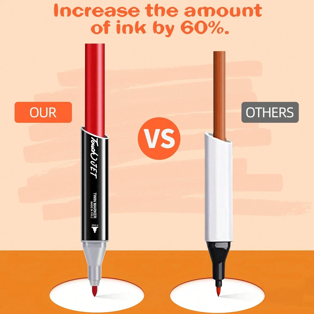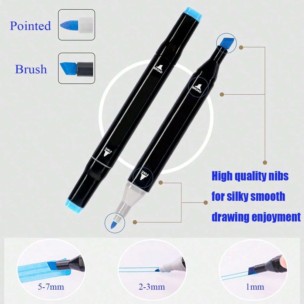 1.[SUPER QUALITY MARKERS]The quick-drying ink color can be kept cleansmooth and evenly, that resists smudging and fading. The professional colorand ease of use have made it popular among people all over the world. Deeplyloved by adults. Buy now and you will quickly experience the happiness thatother painting products can't give. 2. [TWO PENS IN ONE]Save money and space with DUAL TIP MARKERSthat allow you to create fine details with the bullet tip(0.5mm-2mm) or broadsweeping strokes (2mm-7mm) with the chisel tip. Ours markers that alsoreduce coloring lines, helping even beginners create professional effects withthese blendable markers. WARNING: CHOKING HAZARD-Small parts. Not for children under 3 yrs.