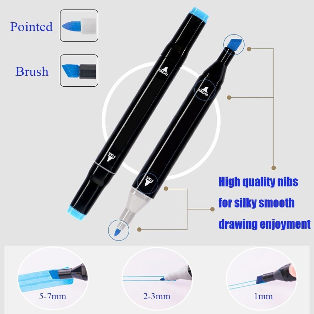 These dual-tip markers are amazing! The colors are vibrant and blend beautifully, perfect for sketching, journaling, or crafts. The fine and bold tips give great control, and the variety is fantastic for any project. Works well on paper, wood, and fabric—so versatile! Ideal for beginners and pros alike. Love the rich pigmentation and smooth ink flow. Highly recommend for artists of all levels!