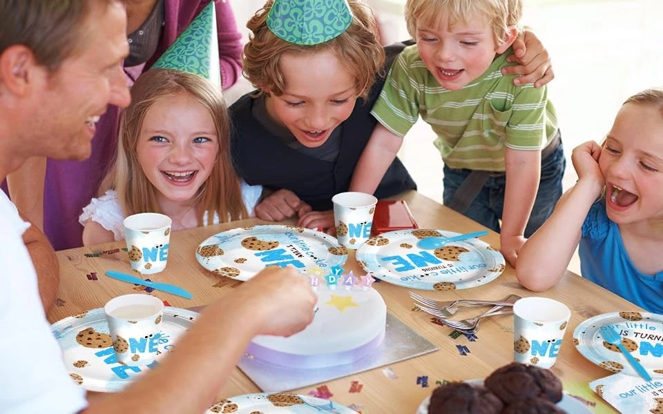 This milk and cookies tableware set includes:24 Pcs 9 inch paper plates and 24 Pcs 7 inch paper plates, 24 Pcs 6.5 inch napkins, 24 Pcs paper cups, 24 Pcs spoons, 24 Pcs knives and 24 Pcs forks. There are a total of 96 pieces in this set, which will add fun to any milk and cookies theme birthday party. Serve 24 Guests:This Milk and Cookies party kit has all you need for 24 guests, include 24 Pcs 9 inch paper plates and 24 Pcs 7 inch paper plates, 24 Pcs 6.5 inch napkins, 24 Pcs paper cups, 24 Pcs spoons, 24 Pcs knives and 24 Pcs forks, totally 168Pcs. They will offer complete set and sufficient quantity for you to treat 24 guests Superior materialsl: Our milk and cookie birthday party plates and napkins are made of high-quality paper, with bright colors that are not easily faded, torn, or broken. Non toxic, odorless, heat-resistant, and safe for food. To provide you with a pleasant user experience, allowing you to use with peace of mind Cute and Bright Design:Milk and Biscuit Party Set, featuring a bunch of chocolate cookies and milk drink elements. The fun and cute design also adds joy and happiness to your party, making your party experience the best value Wide Applications:Our milk and cookie birthday party supplies are suitable for various occasions, such as children's birthday parties, first birthdays, baby showers, and even casual gatherings. It effortlessly complements various themes and decorative styles, adding a touch of fun and surprise to any celebration event Easy to Clean:The milk and cookies birthday party decorations can reduce your cleaning time, so you can spend more time with friends and family at this milk and cookie party. After the party, put away the tablecloth and all the garbage and throw them into the trash can. Quick and efficient cleaning!