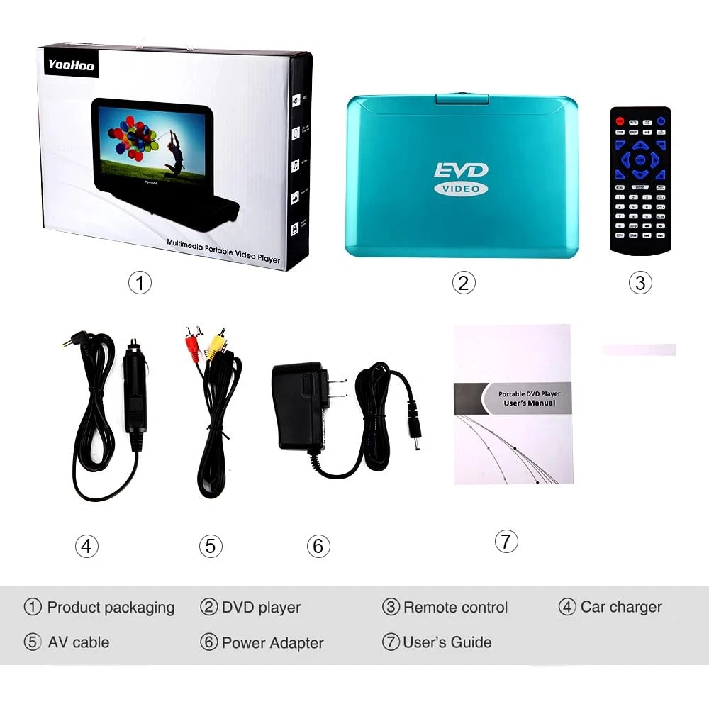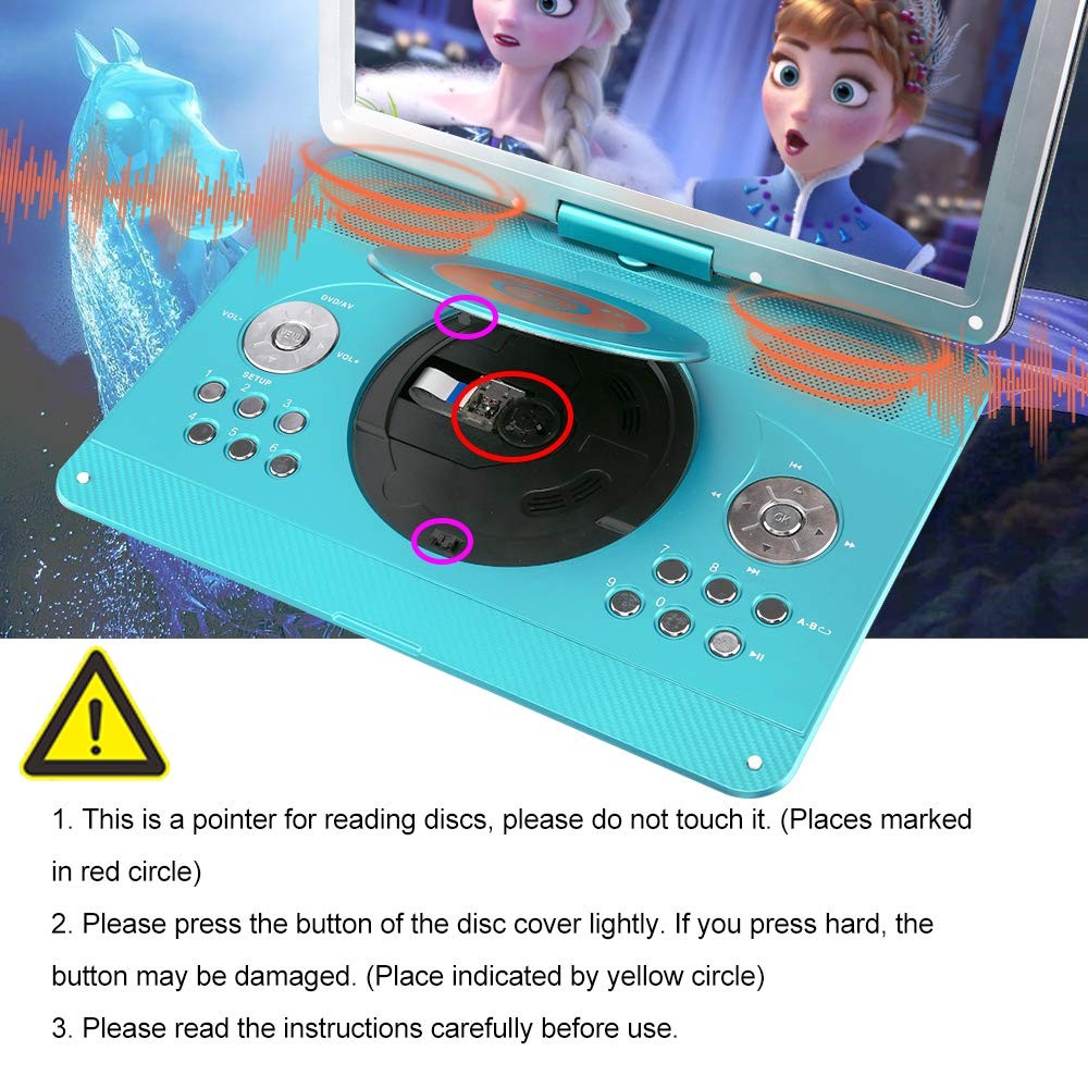 ✤ Swivel Screen- 16.9'' portable DVD player adopts the 14.1 inch eye-protective LCD screen, resolution can be up to 1280*800, 270-degree rotation and 180 degrees flip allows you to get the perfect view ✤ Swivel Screen- 16.9'' DVD player adopts the 14.1 inch eye-protective LCD screen, resolution can be up to 1280*800, 270-degree rotation and 180 degrees flip allows you to get the perfect view ✤ Portable DVD Player For Kids- With 3,500 mAh rechargeable lithium battery, support the USB slot and SD card. Watch movies, enjoy music, read e-books, learn, etc. on our DVD player for up to 6 hours. Makes long car rides with the children a little more tolerable! ✤ Break-Point Memory- Enable the last memory function means the DVD will begin where you left off last time. The slim controller is easy to stash and has a wide button selection. Great for kids, road trips! ✤ Multi-Media:Directly play in formats: CD, DVD, CD-R/RW, DVD-R/+R, DVD+RW/-RW, VCD, SVCD; USB and SD Card supported: MP3/WMA/WAV, JPEG, MPEG2/AVI, TXT. ✤ 12 Months Warranty- We also provide certificated AC power adapter and high quality car charger, One-year Worry-free money back guarantee and lifetime professional customer service & technical !