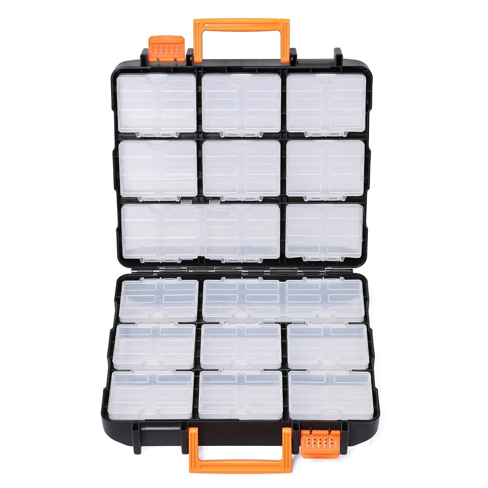 Description The tool organizer box with 16 compartments made of high-quality plastic, more capacity, easy to organize and carry.Equipped with 16 Pcs clear removable boxes.The tools can be set separately to easy distinction.The clear plastic lid allows you to find the right part quickly and efficiently.It comes with 1 year quality guarantee. Include 1pc: 34.3*30.5*13cm We save customer's cost in each step of our operation,with a guarantee of high-quality and reliability. We delivery the most saving and best value to our customers.Choose the products and you will never worry about overpaying or any after sale service. All products come with 1 year quality guarantee. Made of high-quality plastic, more capacity, easy to organize and carry. Size:34.3*30.5*13cm. Equipped with 16 Pcs clear removable boxes.The tools can be set separately to easy distinction. The clear plastic lid allows you to find the right part quickly and efficiently. Double-sided lock, make the small boxes stable in position, easy to carry. It comes with 1 year quality guarantee.