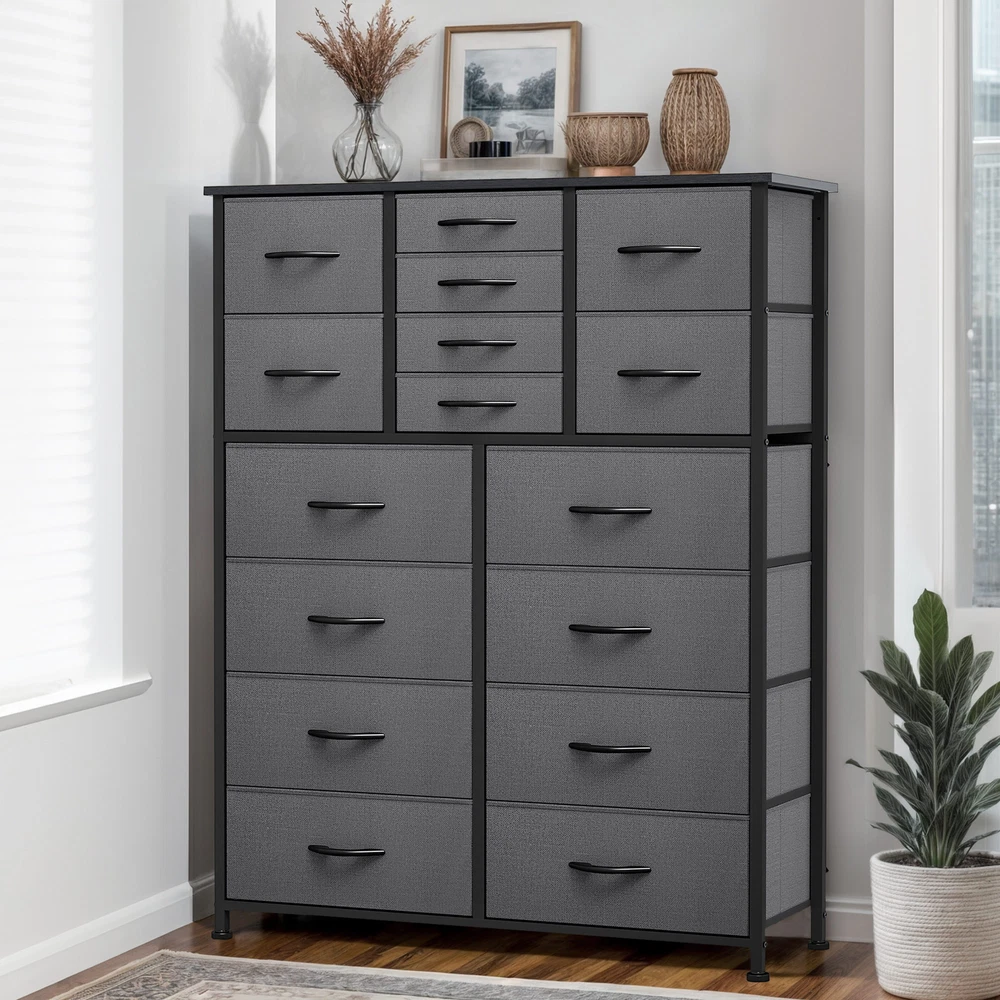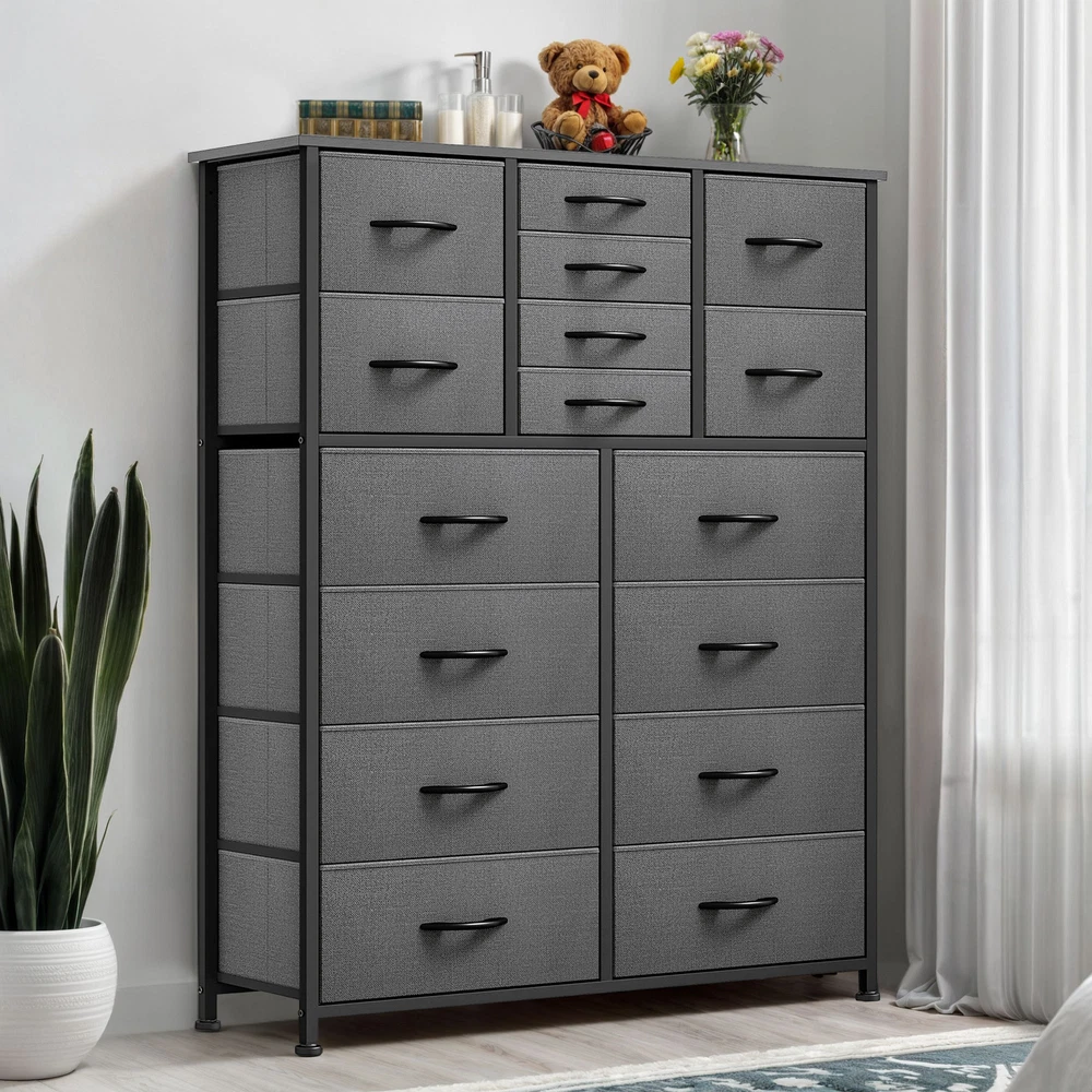 16 Drawers Dresser Tower Fabric Bedside Cabinet Gray Anti Deformation Organizer Product Description NOTE: Professional Installation would be Highly Recommended. Description: 1. Color: Light Gray 2. Material: Medium-density fiberboard (MDF), Fabric, Steel and Plastic 3. Handle Material: Plastic 4. Frame Material: Steel 5. Frame Color: Black 6. Room Type: Bedroom and Living Room 7. Main Features: Waterproof, Abrasion Resistance, Adjustable Legs, Durable Fabric Features: Sturdy Craftsmanship: - Crafted with a durable metal framework and a deluxe MDF wooden surface. - Showcases a dual X-shaped reinforcement bar at the rear for heightened steadfastness. - Adjustable plastic legs guarantee equilibrium even on irregular surfaces. Efficient Design: - Ample tabletop surface, ideal for showcasing elegant lamps or verdant foliage. - Elegant pull handles for a pleasurable grasp and effortless maneuverability. - Fashioned with a low-maintenance non-woven textile for enduring utility. Adaptable Storage Solution: - A petite 16-compartment cabinet, perfect for arranging and optimizing storage space effectively. - Functions admirably as a foyer console, nightstand, divan table, or commode. - Suited for a variety of settings ranging from boudoirs, parlors, entryways, wardrobes, workspaces, and corridors. Assorted Drawer Dimensions: - Comprises 3 distinct drawer sizes: 4 petite, 4 medium, and 8 sizable drawers. - Masterfully crafted to house an array of items such as delicates, hosiery, embellishments, apparel, linens, and beyond. Secure and Simple Assembly: - Dimensions: 37.4"L x 11.8"W x 57.1"H - Comes with clear, step-by-step instructions for hassle-free assembly. - Provides guidance on securing the cabinet to the wall, preventing tipping and ensuring added safety. Dimensions: 1. Overall Dimensions: 37.4"L x 11.8"W x 57.1"H 2. Big Drawers Dimensions: 17.5"L x 10.8"W x 8.6"H 3. Medium Drawers Dimensions: 11.4"L x 10.8"W x 4.3"H 4. Small Drawers Dimensions: 11.4"L x 10.8"W x 8.7"H 3. Capacity: 16 Drawers Package Included: 1. Dresser Storage Chest 2. Assembling Hardware Kits 3. Instruction Manual Book Shipping 1. Normally the item will be dipatched within 1 business day if payment is cleared before 12pm PST. 2. Please verify the correct shipping address in your PayPal account before making the payment. We only dispatch the item to the address that is sent to us at the time of checkout. 3. We don't ship to Hawaii, Alaska, Puerto Rico, APO/FPO/PO Boxes. 4. We don't provide local pick-up service. 5. Normally we will use USPS, UPS, FedEx & LTL to dispatch items. Payment 1. We accept PayPal and credit card. 2. We will ship to the confirmed Paypal shipping address that is provided with the payment only. Return 1. 30 days Money Back Guarantee. 2. Please contact our customer service to receive a RMA form first if want to return the item. 3. All returned items MUST in new condition with the original package. Contact If has any problem, please contact us by sending an ebay message. Our customer service will resolve the problem as soon as possible. On Dec 12, 2024 at 23:03:52 PST, seller added the following information: On Jun 10, 2025 at 05:56:29 PDT, seller added the following information: