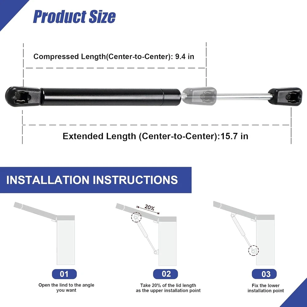 16" 28Lbs/127N Gas Spring Shocks Struts Lift 16" 28Lbs/127N, Black Product Details Compressed Length: 9.4 Inches Manufacturer: Hurotoms Part Number: 200147 Item Weight: 1.21 pounds Package Dimensions: 17.28 x 2.4 x 1.26 inches Item model number: 200147 Size: 16" 28Lbs/127N Style: 16" 28Lbs/127N Batteries Included?: No Batteries Required?: No Brand: Hurotoms Color: Black Material: Stainless Steel Auto Part Position: Center Extended Length: 15.7 Inches ★Must-Read Parameter -- Compressed Length (Center-to-Center): 9.4in (239mm). Extended Length (Center-to-Center): 15.7in (399mm). Force: 28 Lbs/127N per Strut. ★Where you use them? -- 16inch 28Lbs/127N gas shock struts compatible with Leer ARE SnugTop camper shell truck topper rear window, Truck Pickup Cab Canopy Door and other custom Applications. ★NOTE -- Please confirm the length before ordering. Measure the distance from the center of the socket to the center of the socket. ★About Installation -- Easy to install, no special tools required. End Fiting: 10mm Ball Stud Sockets. ★Our Commitment -- Welcome to Click "Ask Seller" BESIDE YOUR ORDER for In-time Assistance if any problem occurs.