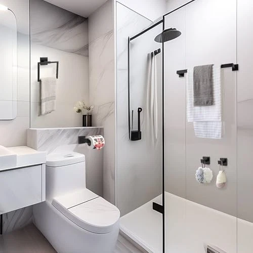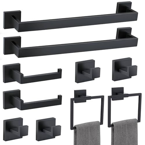 $ 28.1210-piece Matte Black Bathroom Accessories Set Wall Mounted Bathroom Towel Bars