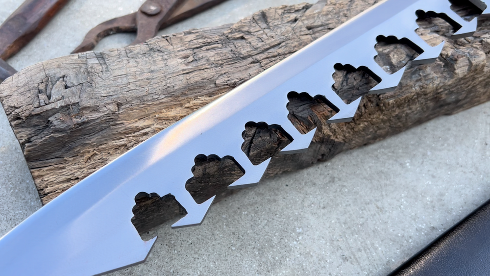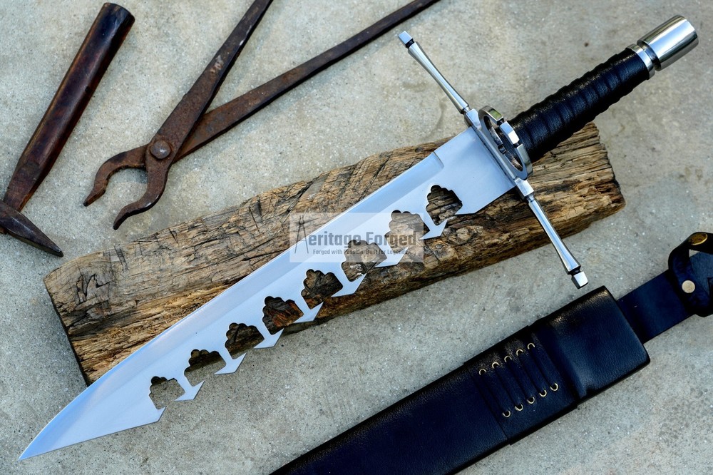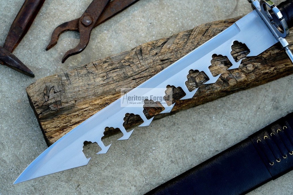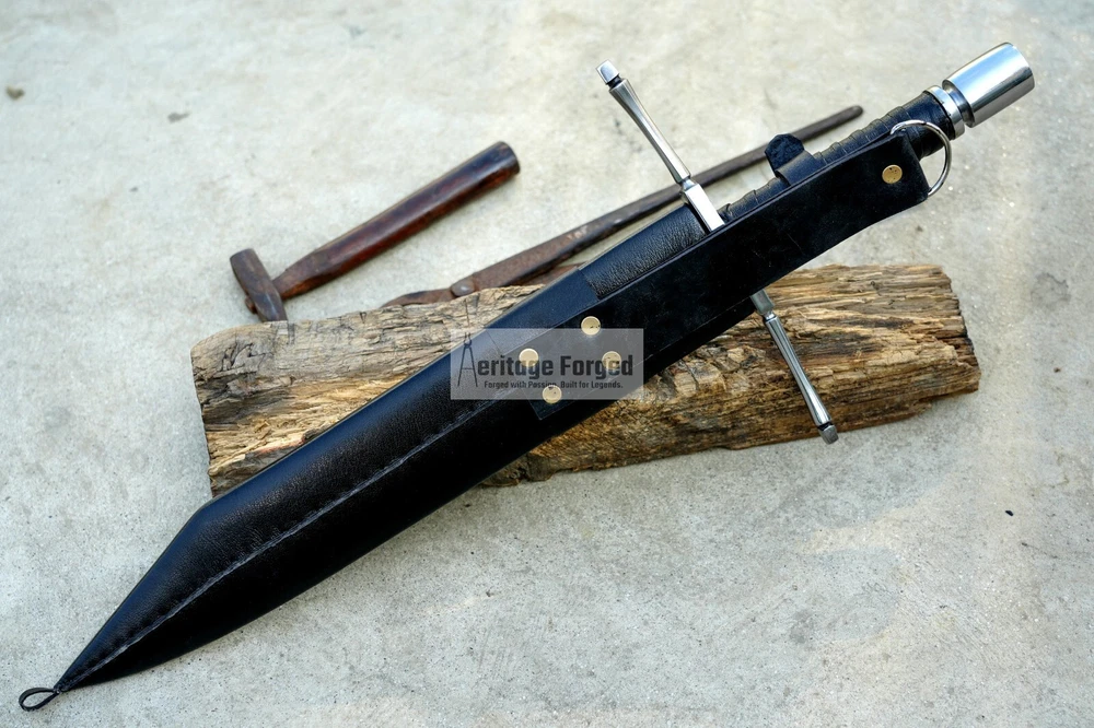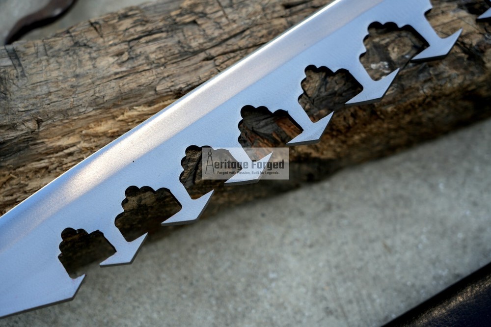 My blades are meticulously hand-forged from high-quality 5160 leaf spring steel, a material renowned for its durability and resilience. Using traditional forging techniques, each blade undergoes a rigorous crafting process that ensures both strength and precision. After shaping, the blades are tempered with water to achieve optimal hardness and flexibility. The final product is sharpened to a keen edge, making it ready use. This combination of traditional methods and modern steel technology results in blades that are both reliable and enduring, designed to perform exceptionally in a variety of tasks. Product Specifications: Blade Length: 16 inches Handle Length:7 inches Total Length: 23 inches Blade Weight:766 Grams Handle Material: Rosewood (leather Wrapped )