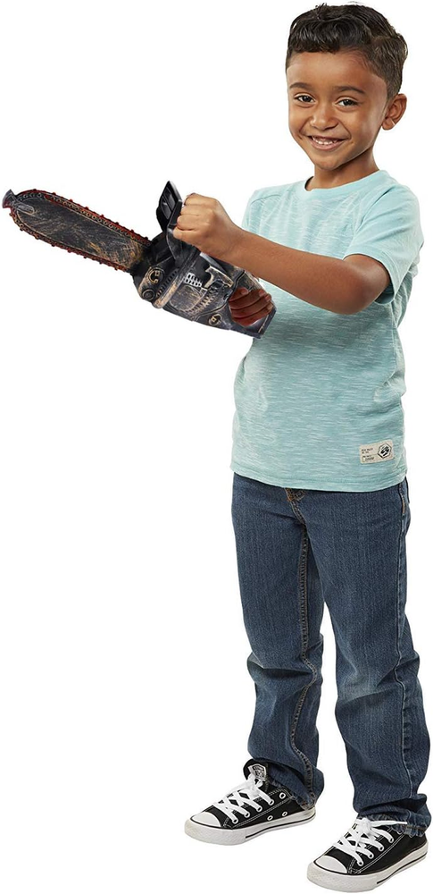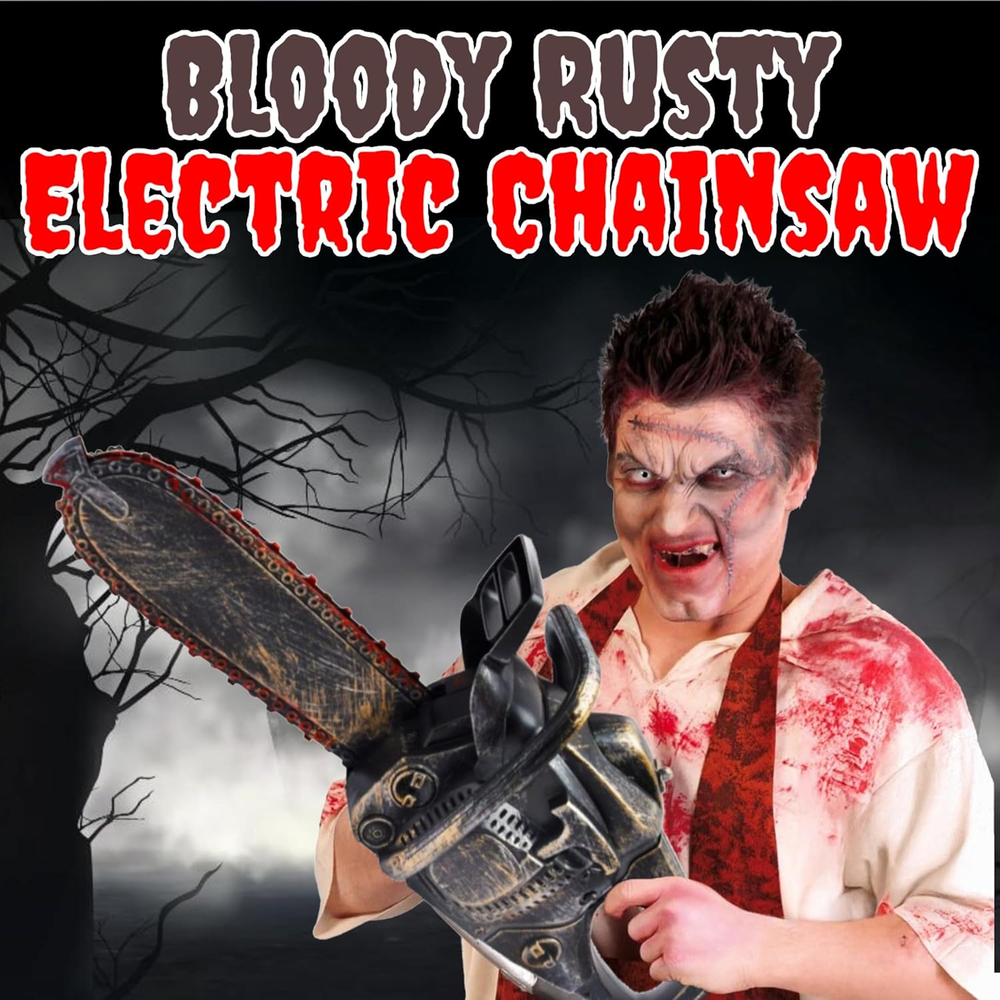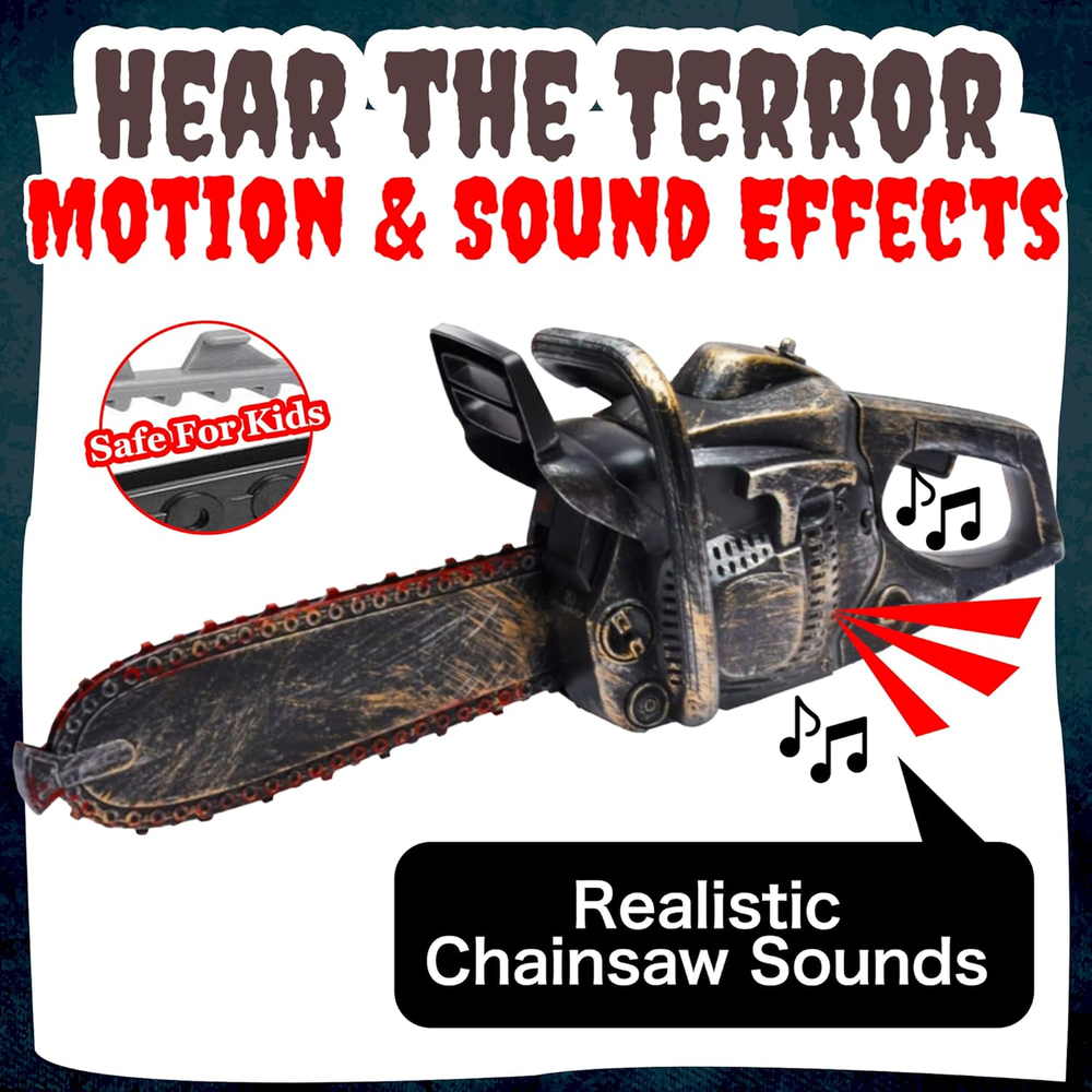 Realistic Chainsaw Design: This electric chainsaw features an eerily authentic rusty and bloody blade with chain, perfect for creating spine-chilling Halloween moments and terrifying unsuspecting guestsV Motion & Sound Effects: Enhance the horror with frightening chainsaw sounds and a rotating chain that adds a touch of realism to your haunted house or costume accessory, ensuring a truly memorable experience Versatile Halloween Prop: Instantly transform any costume or haunted house setting with this chilling chainsaw accessory, adding a gruesome touch to the festivities and making it an essential addition to any Halloween event Batteries Included: No need to hunt for batteries—this menacing prop comes with three AA batteries included, allowing the terror to begin right out of the box for immediate scaring fun Sized for Children: Measuring 16" x 6" x 4", this chainsaw prop is designed specifically for kids ages three to six, ensuring a spooky yet safe Halloween experience that will make them the center of attention Product Description Step up your Halloween game and give your little ones the ultimate spooky experience with our Electric Motorized Chainsaw! Designed to look like a rusty, bloody blade with a rotating chain, this chainsaw prop is perfect for adding a gruesome touch to any costume or haunted house. Sized specifically for children ages 3-6, this realistic chainsaw prop is made of durable plastic and measures 16 inches long, 6 inches tall, and 4 inches wide. Made of lightweight and safe materials, it's easy for kids to handle and play with, ensuring a fun yet secure experience. Incorporate this creepy chainsaw into your Halloween decorations, and you'll have your guests on edge with its authentic appearance and chilling sound effects. Amp up the scare factor at your next party or haunted house event, and watch as your guests marvel at the realistic design and horrifying atmosphere. Don't settle for ordinary Halloween props and decorations - make this year unforgettable with our Electric Motorized Chai Chainsaw Accessory for Halloween Make Halloween a lot more fun with this eerie Chainsaw with Rusty Finish Prop. Simply pull the handle up to initiate the chainsaw and press the trigger to rotate the blade, creating an authentic and terrifying atmosphere. This chainsaw prop not only looks realistic, but it also comes with motion and sound effects, giving your haunted house or costume accessory a spine-chilling touch. No need to worry about finding batteries, as this electric chainsaw prop comes with 3 AA batteries included, so the terror begins right out of the box. Get ready to make Halloween a memorable experience with this versatile chainsaw prop. Whether you're dressing up for a party or creating a haunted house, this chainsaw is the perfect addition to any Halloween event. Transform your child's costume into something truly terrifying with this unique accessory. Ideal for a variety of costumes, from classic horror movie characters to creative and spooky outfits, this chainsaw prop will be the center of attention.