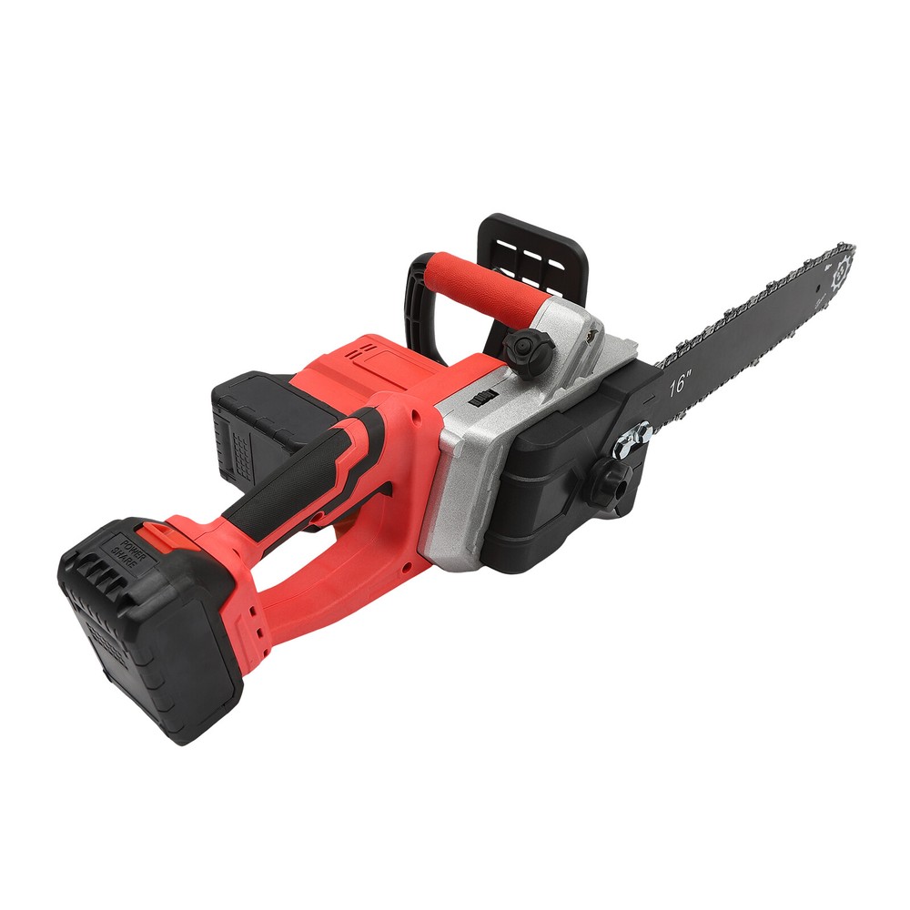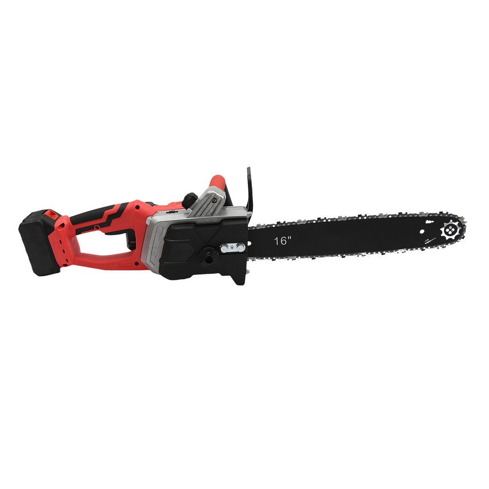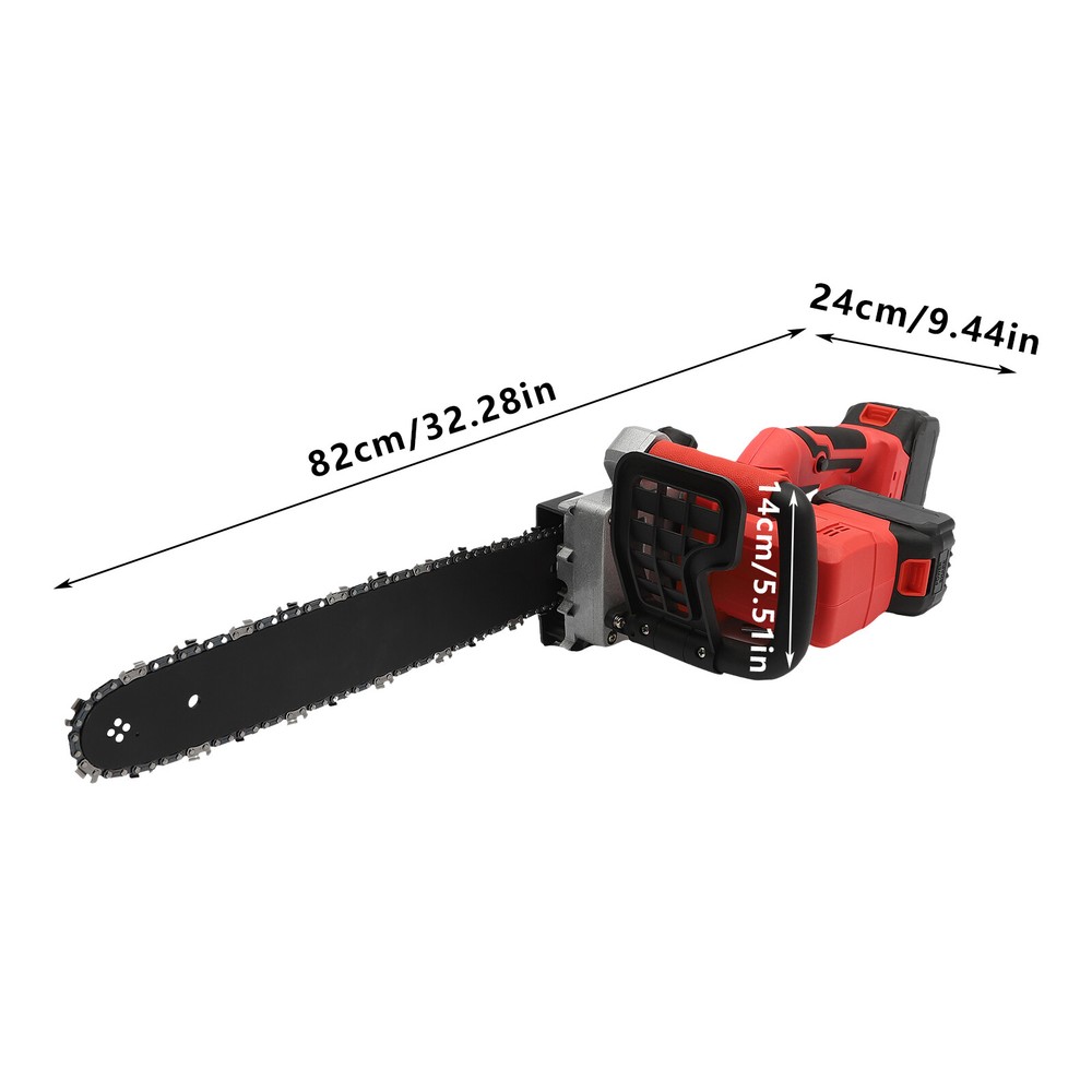 Specification Color: Red, Black Material: Aluminum, Plastic, Copper Motor Type: Brushless Pure Copper Motor Surface Treatment: Quenching Style: Modern Assembly Required: Yes Mount Type: Free Standing Power Source: Battery Usage: Outdoor Type: US Standard Power: 1800W Speed: 8000rpm Charger Model: HSZC-2188 Input: AC100-240V 50/60Hz 1A Output: 21V 1.5A Battery Type: 2*15000mA Lithium Batteries (Included) Continuous UseTime: About 18min Charging Time: 4-5 Hours Charging Line Length: 1m/3.28ft Number of Items: 1 Maximum Cutting Diameter: 50mm/1.97inch Guide Plate Size: 40.64m/16inch Gross Weight: 6kg/13.23lbs Net Weight: 5.5kg/12.13lbs Package Size: 46*26*20cm/18.11*10.24*7.87inch Product Size: 82*24*14cm/32.28*9.44*5.51inch 16 INCH Brushless Chainsaw Battery Operated Chainsaw for Wood Cutting & Trimming Description Committed to helping you easily complete wood-cutting work, our portable brushless chainsaw uses a variety of high-quality materials and exquisite craftsmanship, providing quality assurance. The high power of 1800W allows you to easily handle various cutting tasks, saving time and energy. It breaks the drawbacks of traditional wood-cutting methods and brings you more convenience in use. Application With a maximum cutting diameter of 1.97inch, this product can be widely used in families, DIY studios, the decoration industry, construction sites, industrial manufacturing, farms, pastures, scenic spots, garden engineering, the wood processing industry, and other fields for logging, bush clearing, etc. Specification Color: Red, Black Material: Aluminum, Plastic, Copper Motor Type: Brushless Pure Copper Motor Surface Treatment: Quenching Style: Modern Assembly Required: Yes Mount Type: Free Standing Power Source: Battery Usage: Outdoor Type: US Standard Power: 1800W Speed: 8000rpm Charger Model: HSZC-2188 Input: AC100-240V 50/60Hz 1A Output: 21V 1.5A Battery Type: 2*15000mA Lithium Batteries (Included) Continuous UseTime: About 18min Charging Time: 4-5 Hours Charging Line Length: 1m/3.28ft Number of Items: 1 Maximum Cutting Diameter: 50mm/1.97inch Guide Plate Size: 40.64m/16inch Gross Weight: 6kg/13.23lbs Net Weight: 5.5kg/12.13lbs Package Size: 46*26*20cm/18.11*10.24*7.87inch Product Size: 82*24*14cm/32.28*9.44*5.51inch Features Build to Last: Premium aluminum, plastic, copper, and quenching process make the product solid and durable, so it can keep beautiful and practical outdoors for a long time. High Efficiency: The 1800W brushless pure copper motor with high-temperature resistance, low energy consumption, and less noise, 8000rpm speed, 16inch guide plate, the smooth and sharp chain with high hardness, and a stable structure can provide strong power for your cutting work without getting stuck, thus improving your efficiency, and reducing the unsightliness and material damage caused by manual cutting. Carefully Designed: The chain tension system guarantees optimum tension while tightening through the knob. The self-injection lubrication system can reduce frictional resistance and ensure smoother operation. Long Endurance: Two 15000 mA lithium batteries allow you to work continuously for about 18min and require less charging time(4-5 hours), meeting the needs of outdoor work. Safety Guard: Multiple heat dissipation holes, a protective barrier to prevent wood chips from splashing, a safety switch for preventing accidental triggering, a one-click lockable safety switch, two batteries that have undergone aging treatment and multiple charging and discharging tests, and gloves inside the packaging can effectively ensure safety and extend the product's service life during operation, so you can use it with confidence. Simple Installation and Operation: The simple structure, convenient switch and knob, detailed English manual, and complete accessories allow you to complete the installation and start using it in a short period of time. Effortless Cleaning: The smooth surface and removable design allow you easily clean the dust and debris with a soft towel. Friendly Design: This product is battery driven, which can reduce gasoline consumption and environmental pollution to a certain extent, and also save you costs. The complete kit also eliminates the need for you to purchase separately, making it more convenient and cost-effective. Easy to Carry and Store: A small size of 32.28*9.44*5.51inch and cordless design let you easily store and take them to any workplace, and prevent items loss. Compared with the clumsy and unsafe chain saw, this item is more convenient and safe. Ideal Gift: With its excellent performance, this product can be used as a gift for family, friends, and loved ones to make their cutting work easier. Details Round Corners: The arc design without a burr can effectively care for your skin compared with the traditional square corners. Long Charging Line: The 3.28ft line reduces usage restrictions and further protects your safety. Comfortable Handles: Two soft handles can provide you with maximum grip comfort and play a role in anti-slip and shock absorption. Package Included 1* Portable Brushless Chainsaw 2* Batteries 2* Chargers 1 Pair* Gloves 1* 16inch Guide Plate 2* Chains 1* Protective Baffle 1* Auxiliary Handle 1* English Manual Other Accessories for Installation Notes Please use and install it in strict accordance with the manual, pay attention to the safety precautions inside, and check the accessories carefully. Please note that lubricating oil is not included, and you need to simultaneously press the safety switch and start switch to use this product. This product is suitable for all lubricating oils. For better results, we recommend that you use clean lubricating oil. Please use a dedicated charger for charging and place the battery in a low-temperature and dry place. Please do not put the battery into a flame for heating, and do not disassemble the battery randomly. Please be cautious of potential electrical safety hazards, take necessary personal protective measure