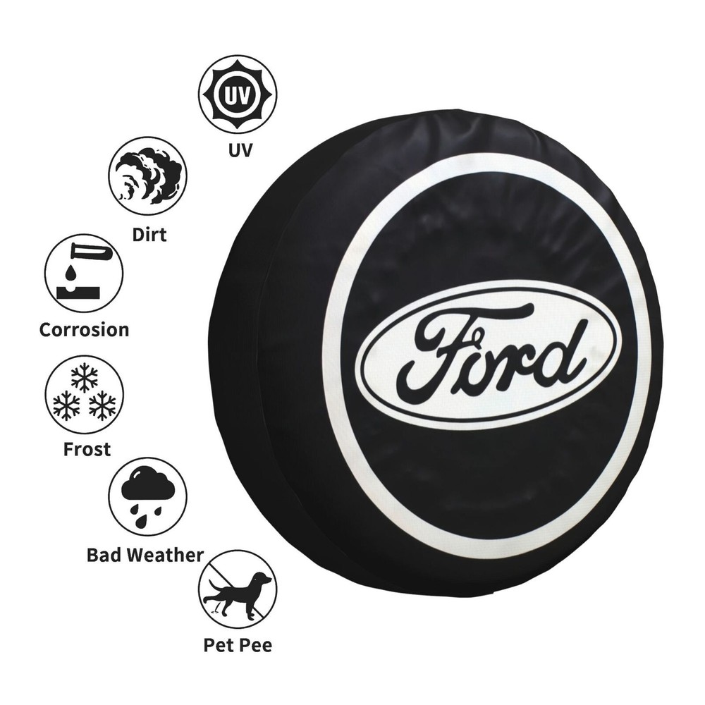 This 16 inch Spare Tire Cover is designed specifically for Ford vehicles, featuring a vintage black logo vinyl material that adds a touch of classic style to your car. The cover is made to fit the rear tire of your vehicle and is an interchange part number TC107, ensuring compatibility and easy installation. Perfect for those looking to enhance the look of their Ford while also protecting their spare tire from dust and debris.