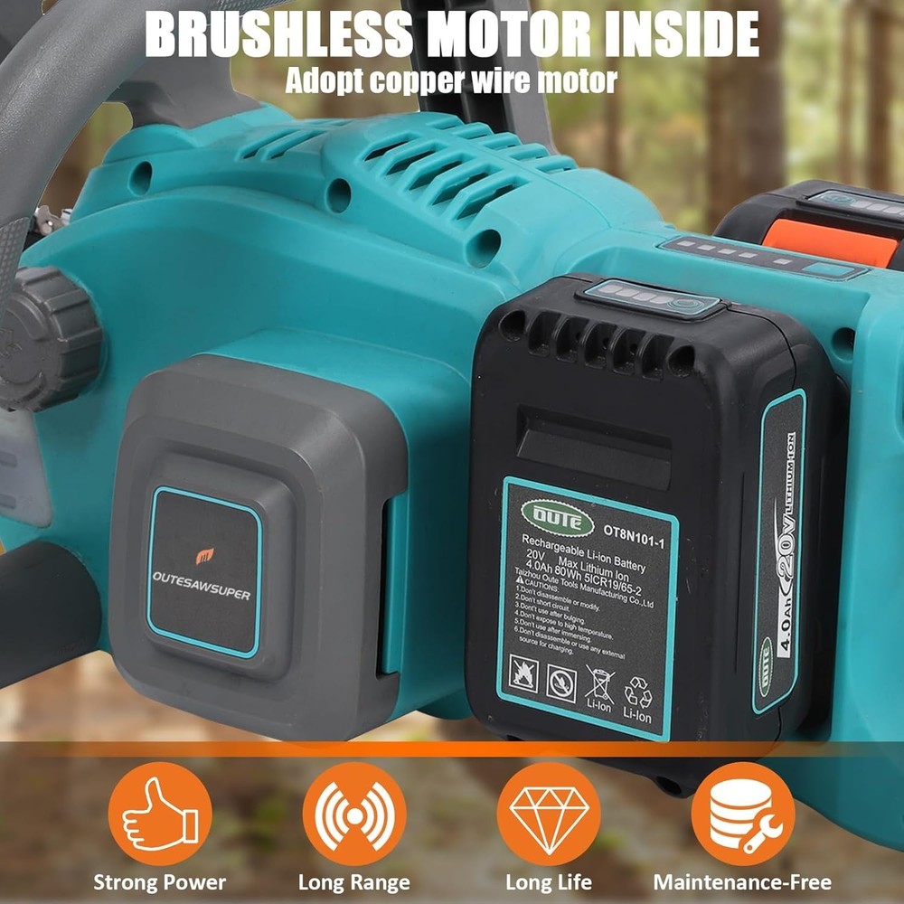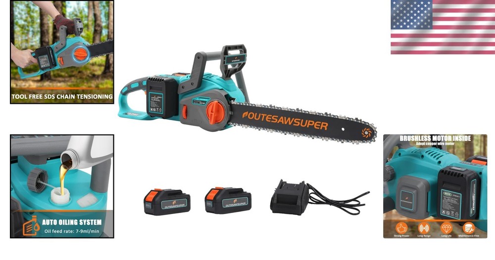 $ 63.3516-Inch Brushless Battery-Powered Chainsaw with Charger for Wood Cutting