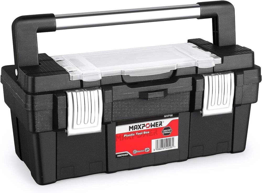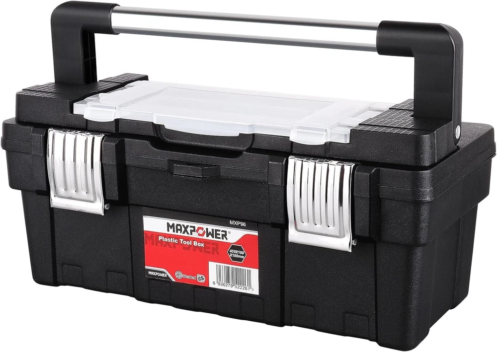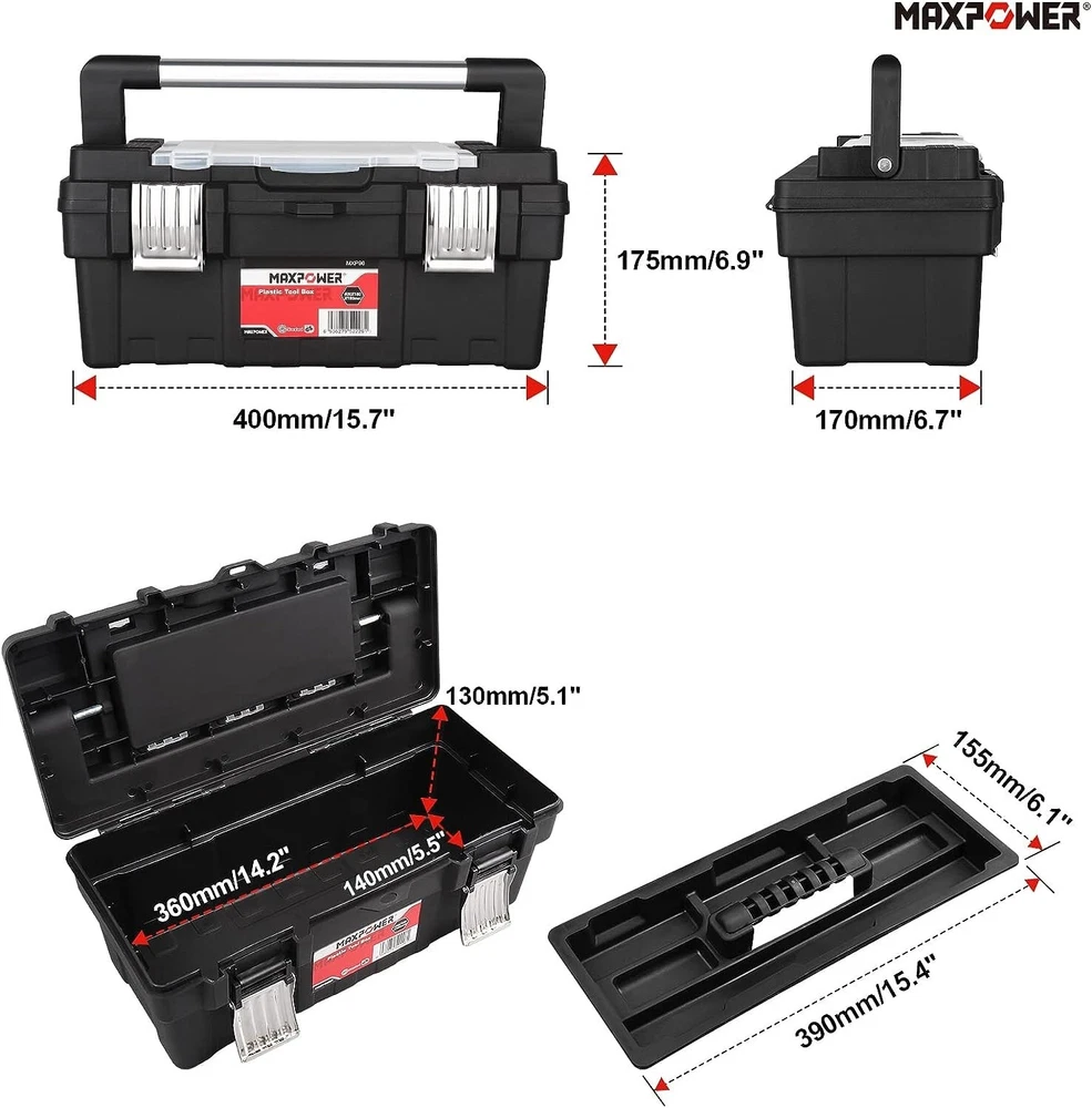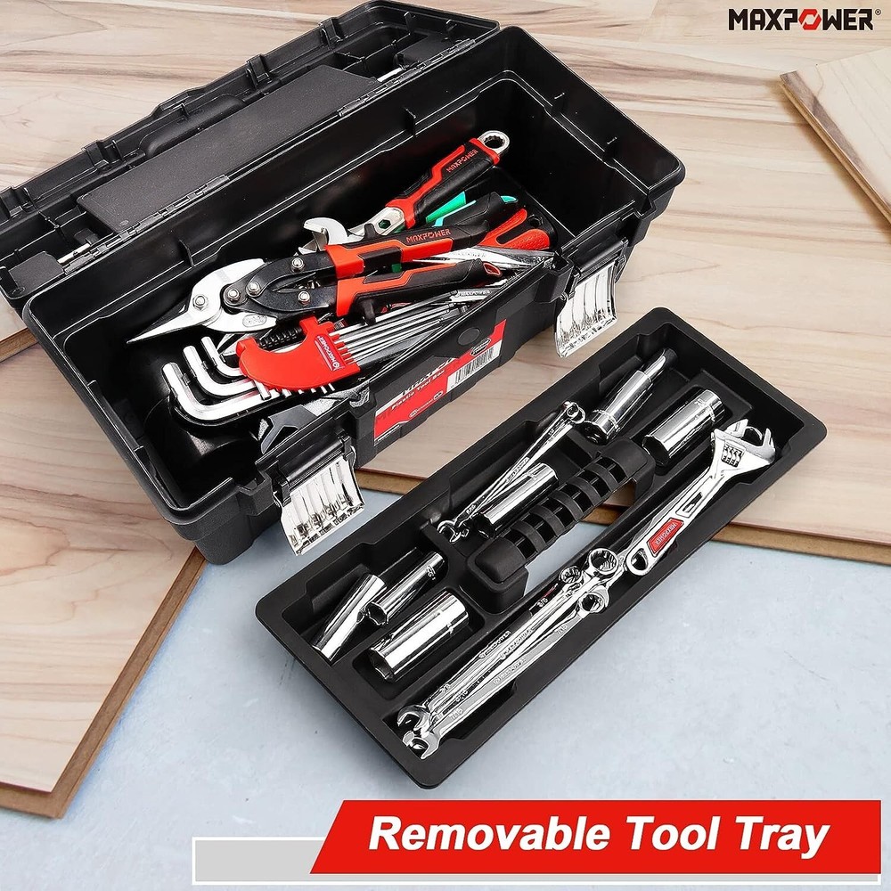 16-Inch Portable Tool Box with Removable Tray and Durable Stainless Steel Handle