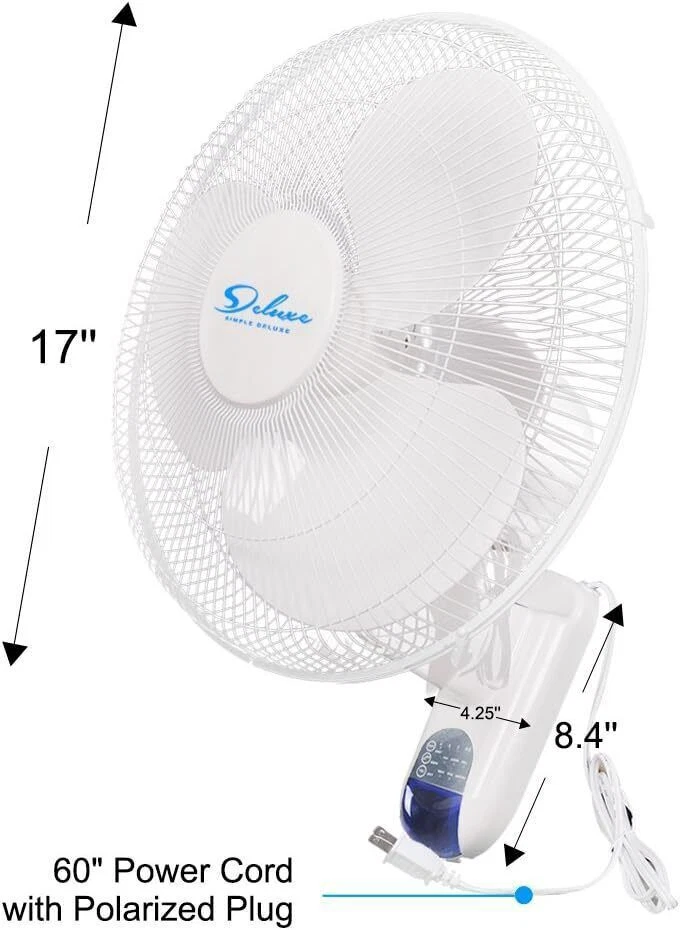 From the brand HOT--Multi Size Home Fan Multiple Types of Wall Fans Multiple Types of Home Fans Stand Fans and Floor Fans HOT--Multi Size Floor Fan Drum Fans Floor Fans Clip Fans Multiple Types of Home Fans HOT--Multi Types Home Fan Multi Types Home Fan Multi Types Home Fan Multi Types Home Fan Multi Types Home Fan From the manufacturer Simple Deluxe 16 Inch Digital Wall Mount Fan 90° oscillation with control 60° adjustable tilt 3-speed setting 30-minute increment timer up to 4 hours 3-mode control (normal/ natural/ sleep) Strong & durable ABS fan blades 5ft power cord Come with remote control, battery not included 120V/ 60Hz/ 60W 90° Horizontal Ocillation Durable neck support 90 degrees right/left oscillation with remote control. It brings your room more cooling air in a larger area. Remote control · Low/ Medium/ High Speed Control · Normal/ Natural/ Sleep Mode Control · 30-minute increment timer up to 4 hours Easy The distance between the remote control and the fan should be within 5 meter and 30 degrees radius left to right of fan. Applications: Living Room Meeting Room Garage