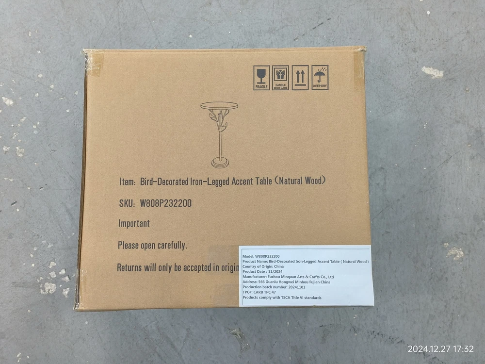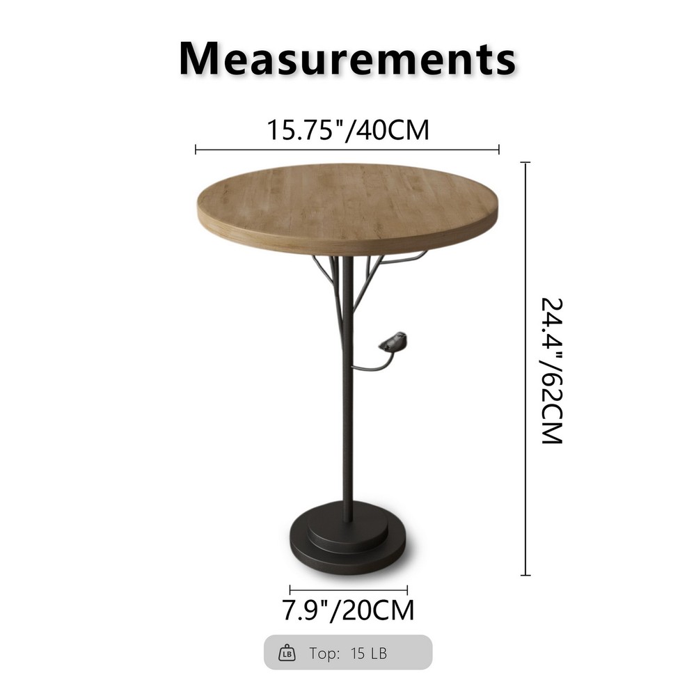 Home Shipping Return Policy About Us Contact Us Feedback Material: Wood, Steel Iron Top Diameter: 15.75" / 40cm Table Height: 24.4" / 60cm Parcel Weight: 8.4 lbs Features: DESIGN FEATURES: This side table has a round design without any table corners, avoid unnecessary bump injured.The design of the round base connected to the metal legs maximizes the stability of the coffee table. Meticulously crafted iron decorative elements feature lifelike perching birds, bringing a poetic natural charm to your living space. VERSATILE USE: Perfect side table for living rooms, entryways, or as an accent piece, combining classic style with modern farmhouse aesthetics, Perfect for living room corners, beside sofas, or in entryways, adding a touch of vintage elegance to your living space. CONSTRUCTION: Crafted from high-quality MDF and sturdy metal, this round table is built to last. Its smooth tabletop is easy to clean, featuring rounded, polished edges for a refined finish. The durable metal legs are equipped for enhanced stability on any surface. American Country Style: Perfectly blending rich vintage elements with American aesthetics, the distinctive aged finish gives this piece an authentic historical presence, as if carrying generations of memories. The sophisticated willow bark veneer adds a touch of natural rusticity, infusing your space with enchanting country charm. As a decorative side table, it can either stand alone as a focal point or seamlessly complement American vintage decor styles. QUICK & EASY ASSEMBLY: Assembly is a breeze. Simply follow the clear, step-by-step instructions to enjoy a sleek and stylish table that complements your home décor. Parcel Included: 1× Artistic Accent Coffee Tea End Table Payment Delivery details Terms of sales About us Contact us Payment Thank you for buying, and any payment Ebay accept is OK. Delivery details Usually your parcel or parcels will be handled and sent out in 1 working day. Usually you will receive your parcel or parcels in 2~5 working days, depends on the courier and parcel size, sometimes large parcel is slower. In case there is any problem about tracking or delivery, please feel free to contact us, we will contact courier to resolve, and no matter what, we will resolve for you. Terms of sales Any message from you will be replied in 24 Hours. Any problem will be resolved or offered solutions in 24 Hours. Please kindly do not open any case before contacting us, I promise you that any question or problem will be replied or resolved much faster if you contact us directly. We are all nice and honest people, in case anyone don't reply you in polite manner, or anyone don't resolve your problem in good way, send a message with a title Your manager, then I will take care your problem by myself. Thank you very much, and I am the company owner, Jess Wang. About us A experienced team to service USA people and market, we always be available to our customers, we don't let anyone wait longer than 24 Hours, please feel free to contact us at any time. Contact us Free Return for any problem even it is just a slight problem when you want to return. Please kindly contact us before opening any case. When you want to return just because you buy wrong or just don't like it or just don't want it, also, just contact us, we will assist you as always. Have a lovely day, thank you for visiting.