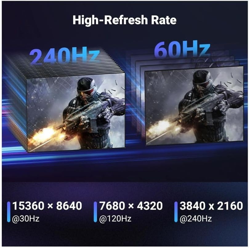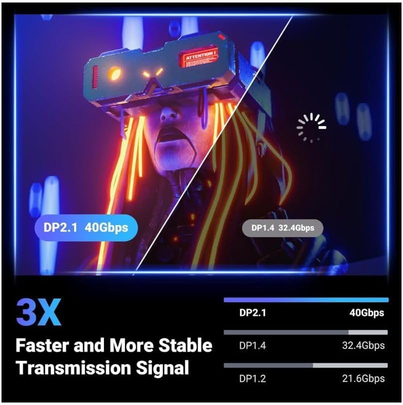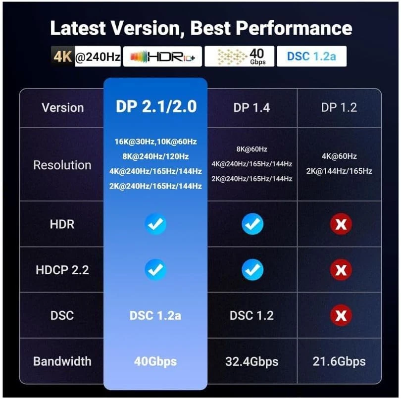 16K 6.6FT Displayport Cable 2.1 [VESA Certified] DP2.1 40Gbps Support 8K@240Hz 4K@240Hz HDR, HDCP, DSC 1.2A, Braided Display Port Cable Cord Compatible Freesync G-Sync Video Card Monitor Upgrade your daily routine with 16K 6.6FT Displayport Cable 2.1 [VESA Certified] DP2.1 40Gbps Support 8K@240Hz 4K@240Hz HDR, HDCP, DSC 1.2A, Braided Display Port Cable Cord Compatible Freesync G-Sync Video Card Monitor — premium build for reliable performance and long-lasting value. Enjoy fast handling, friendly support, and a risk-free purchase backed by easy returns. Trusted seller with excellent feedback Popular item — often sells out quickly 30-day returns, no questions asked Key Benefits Feel the quality: durable materials and clean finish Save time: quick setup and easy everyday use Peace of mind: hassle-free support via eBay Messages Smart value: excellent price–performance for home, office, hobby, or professional use Item Specifics Item model number 15384 Number of Items 1 Specification Met Vesa Unit Count 1 Count Connector Gender Male-to-Male Outer Material Nylon Number of Pins 1 Package Dimensions 7.68 x 7.32 x 0.75 inches Manufacturer Group Limited Indoor/Outdoor Usage Indoor, Outdoor Connector Type DisplayPort Item Weight 1.1 pounds Special Feature Digital Display, Data Transfer, High Speed, Heat Resistant, Alu Braided, VESA Certified Compatible Phone Models No Compatible Phone Models Data Transfer Rate 40 Gigabits Per Second Color Purple Cable Type Display Port Compatible Devices function(f) {var _np=(window.P._namespace("DetailPageProductOverviewTemplatesJava"));if(_np.guardFatal){_np.guardFatal(f)(_np);}else{f(_np);}}(function(P) { P.when('A').execute(function(A){ A.on('a:truncate:po-attribute-truncate-3:updated', function(data) { var isTruncated = !data.truncateInstance.getIfTextFits(); var seeMoreElement = document.getElementById('po-attribute-see-more-id-3'); if(seeMoreElement) { seeMoreElement.style.display = isTruncated ? '' : 'none'; } }) }); })); Nvidia RTX 5090/RTX 5080/RTX 3090/RTX 4090/RTX 4080ti/RTX 5070 Ti/RTX 4070ti graphics cards, and AMD Radeon RX 9070 XT/RX 6900 XT/RX 7900 XT/RX 9060 XT graphics cards, and Odyssey G8/G9, Ben Q, Alienware, LG Ultragear monitors, HDTV, Fire TV, computer See more Shape Round Frequency 30 Hz Recommended Uses For Product Indoor, Playing games, outdoor Size 6.6FT Description Cutting Edge 16K DisplayPort Cable: UGREEN16K DisplayPort cable 2.1 supports high resolutions 16K@30Hz, 8K@240Hz, 4K@240Hz. And backward compatible with Display Port 1.4 1.3, 1.2. Single-screen video output of 16K@30Hz (DSC 1.2a), and dual-screen supported. The DP to DP cable also supports HDR, HDCP 2.2, FEC forward error correction and UHBR10 which ensure your immersive viewing experience. (Note: 20-pin is disabled with no power. No need to worry about the 20-pin issues.) VESA Certified 40Gbps DP Cable 2.1: This Display Port 2.1/2.0 cable features an unprecedented bandwidth of 40Gbps, nearly 3 times what was available in the previous DP 1.4 spec. Stable and high-speed transmission without signal loss. The DisplayPort cable also backward compatible with previous DP 1.4 and DP 1.2 standards. The monitor cable meets the VESA Standard and supports 3D&HDR and Dolby&eARC to provide you with amazing sound and image quality Optimized for Game Enthusiasts: The DP cable 2.1 is highly recommended for game setups as it works well with game monitors and graphics cards, delivering high-quality video and audio signals with no lag or interference. It supports FreeSync and G-Sync, which are essential for gaming. You can easily connect multiple monitors with Multi-Stream Transport (MST). Variable refresh rate (VRR) and auto low latency mode (ALLM) bring you smoother game experience especially in FPS, 3A and MOBA games Ultra Durability: UGREEN DisplayPort cable port with no buckle design can prevent accidental damage. DP cable 2.1 is made of 28AWG tinned copper and tinplate which features triple shielding and resistance with EMI. Aluminum alloy housing is resistant to rust and can accelerate heat dissipation. The Display Port cord has a strong nylon braided jacket, which is 10X more durable than PVC. It can provide higher connectivity and longer service life for better signal transmission Wide Compatibility: UGREEN 16K@30Hz DP cable is compatible with all devices with DP ports, compatible with Nvidia RTX 5090/RTX 5080/RTX 3090/RTX 4090/RTX 4080ti/RTX 5070ti/RTX 5050 graphics cards, and AMD Radeon RX 9070 XT/RX 6900 XT/RX 7900 XT/RX 9060 XT graphics cards, and Odyssey G8/G9, Ben Q, Alienware, LG Ultragear monitors, HDTV, Fire TV, computer and others. Support DP, DP++ modes, backward compatible 2.0/1.4/1.3/1.2 Product description UGREEN 16K DisplayPort Cable 2.1 / 2.0 for Smooth Viewing The video showcases the product in use. The video guides you through product setup. The video compares multiple products. The video shows the product being unpacked. UGREEN 16K DisplayPort Cable Merchant Video 1 240Hz High Refresh Rate 2 40Gbps Ultra High-Speed 3 Real-Time HDR 4 VESA Certified DP 2.1 1 Immersive Game-Playing 2 Professional Work 3 AR Scenarios 4 Realistic 3D Visual Feast DisplayPort 2.1 Reinforced Joint Bare Copper Nylon Braided Comparison of UGREEN Video Cables Add to Cart Add to Cart Price $13.99 $ 13 . 99 $29.99 $ 29 . 99 $19.99 $ 19 . 99 $15.99 $ 15 . 99 $9.34 $ 9 . 34 $29.99 $ 29 . 99 $7.99 $ 7 . 99 Connectors DP to DP DP to HDMI DP to HDMI Adapter DP to DP DisplayPort to HDMI DP to HDMI Bidirectional DP to DP Resolution 16K@30Hz 8K@60Hz 8K@60Hz 16K@60Hz 4K 4K@60Hz/4K@30Hz 8K@60Hz Cable Length 3.3/6.6/10FT 0.66FT Adapter 1.6/3.3/6.6FT Adapter 6.6FT 3.3/6.6/10/16FT Version DP2.1 HDMI 2.1/DP 1.4 HDMI 2.1/DP 1.4 DP2.1 DP 1.2 DP1.2 DP1.4 Material Aluminum Case+Nylon Braided Aluminum Case+Nylon Braided Aluminum Case Aluminum Case+Nylon Braided Aluminum case Aluminum Case+Nylon Braided PVC Case+Nylon Braided 7.32 inches x 7.68 inches x 0.75 inches. Weight: 1.1 lb Package Includes 1× 16K 6.6F