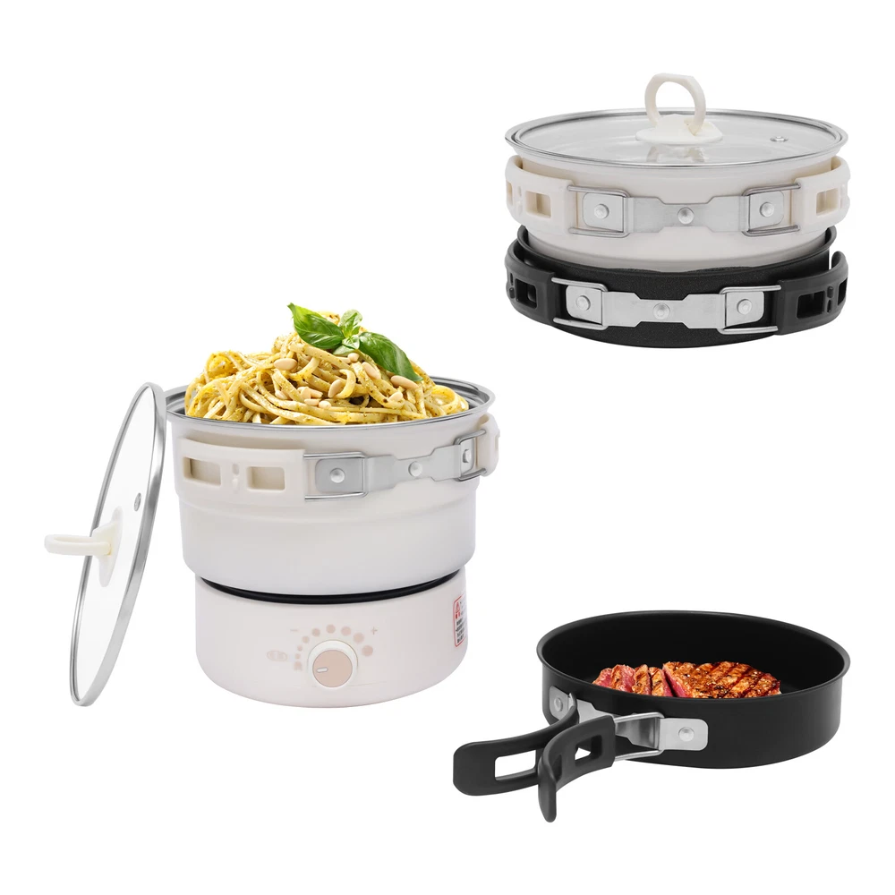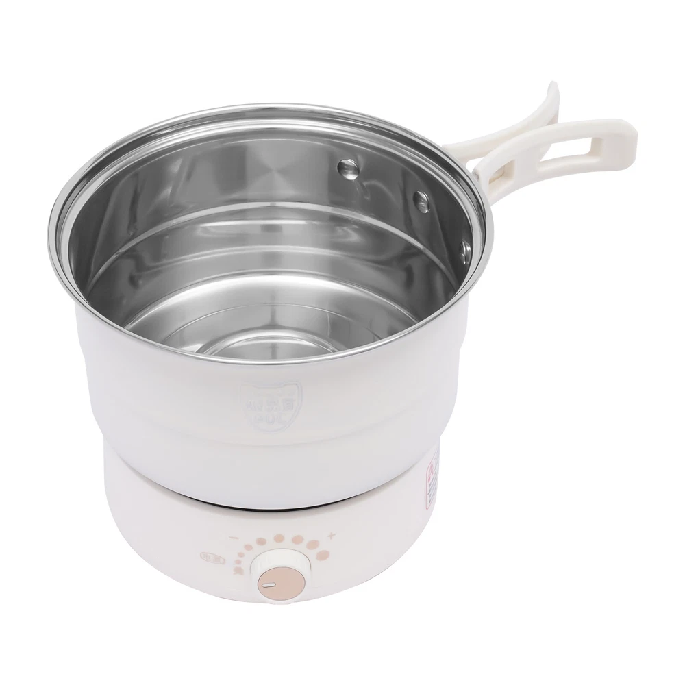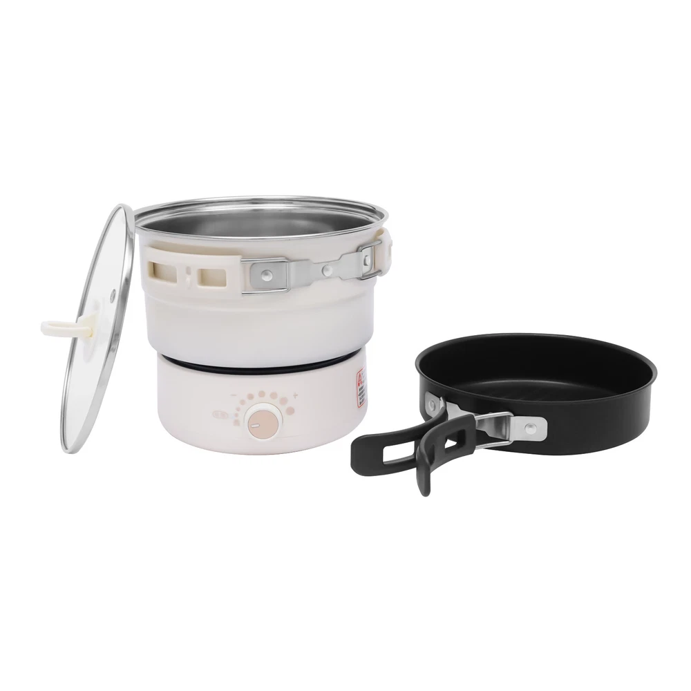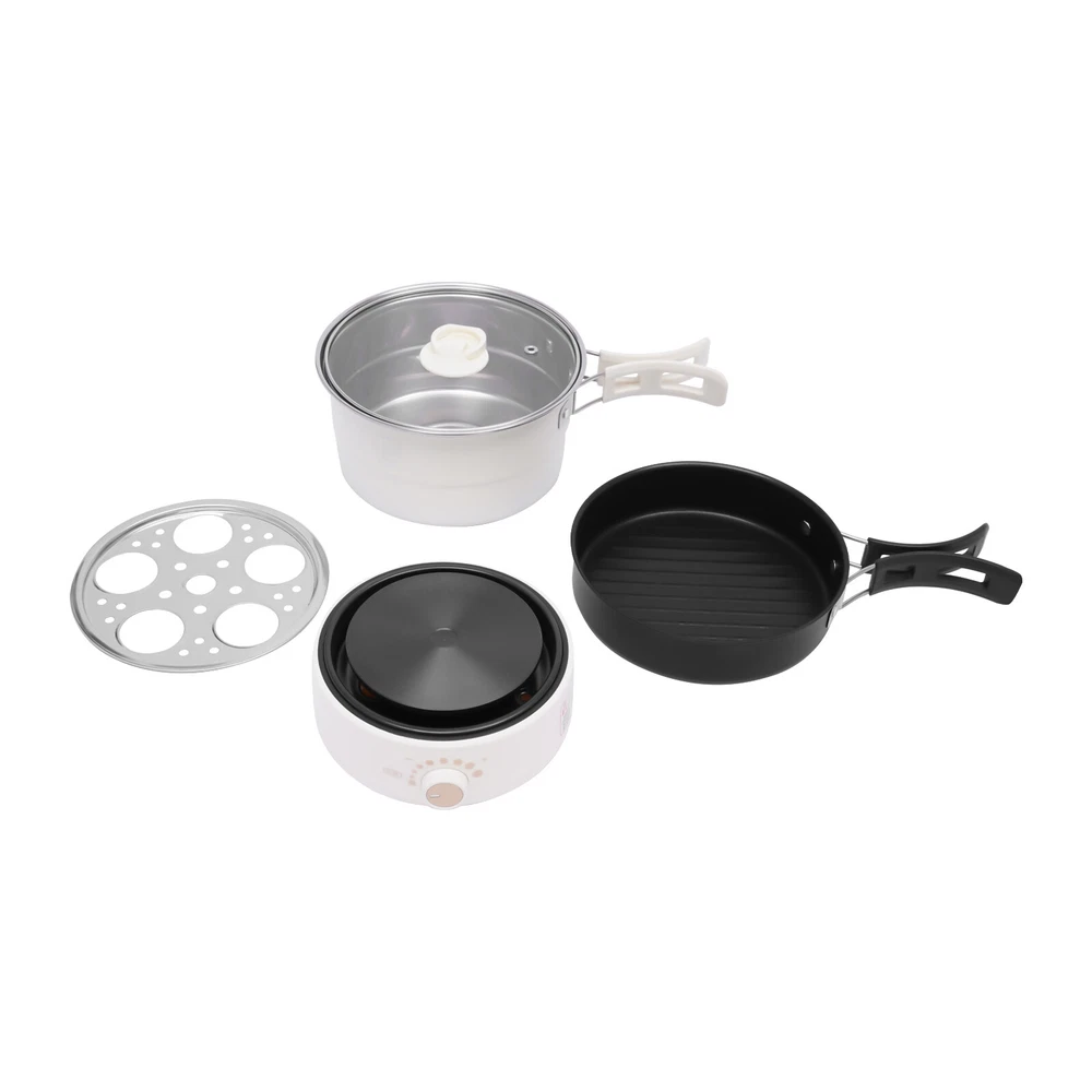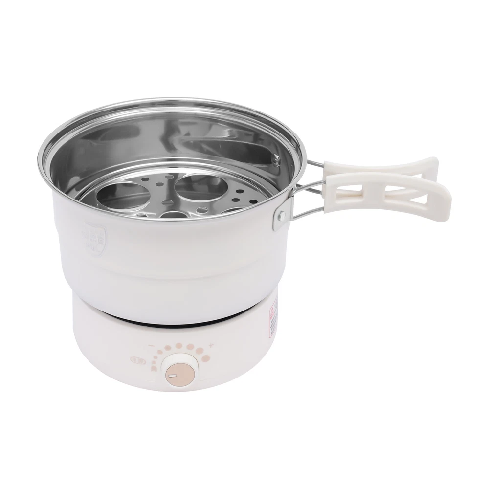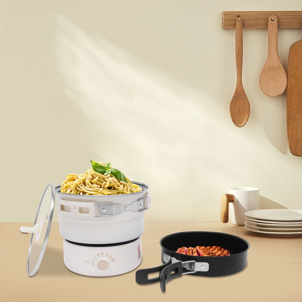 💖Fast Shipping & High Quality💖 Portable Electric Hot Pot with Foldable Handles, Non-stick Frying Pan, Mini Hot Pot, Multi-Functional Ramen Noodle Cooker for Pasta, Oatmeal, Soup, Steak with Power Adjustment Description Delicious food such as a sunny-side-up omelet or a tender steak is always a source of joy. Even if you are always alone, you need to take your meals seriously. This portable electric hot pot has a split design for easy storage and portability. It is also equipped with both a frying pot and a soup pot, with the multifunction of steaming, boiling, frying, and stir-frying. It can accompany you with good food to spend those times just for you alone. Key Features Multi-position Heat Adjustment: The portable electric hot pot has an 8-level temperature control function. You just need to turn the knob to set the appropriate temperature for different foods and enjoy various delicacies. High Safety: The sauce pot, frying pot, and lid are equipped with anti-scald handles, so you don't have to worry about burning your hands during cooking. In addition, it has an over-temperature dry burn automatic power-off device, which can well protect your safety when using the appliance. 360° Full Plate Heating: This product adopts a three-dimensional high-temperature heat transfer design, which makes the ingredients more evenly heated. It performs better especially in deep-fried cooking, such as frying steaks, salmon, and other meats, which can make the food look more tempting. Convenient to Clean: The frying pot features a dimpled pattern that is less likely to stick to the pot. And the inner liner of the product is coated, which makes it easier for you to complete the cleaning task. Split Design: The heating base and the pot features a split design. This is not only easier to clean but also safer to use electricity. You don't have to worry about water entering the circuit and damaging the product. And when it's not in use, you can stack the base, sauce pot, frying pot, and lid together, which is great for storage. Large Capacity: The stockpot has a large capacity of 0.42 GAL. It can hold a variety of ingredients, so you can enjoy a delicious meal for two with friends or loved ones. Stylish Appearance: The product has smooth lines and a cylindrical shape. The rounded body of the product brings a lovely feeling. It will be a unique showpiece in your kitchen. Powerful Power: The product has a high power of 500W. The powerful power can make the hot pot heat up faster, so you can enjoy food in a few minutes. Multi-functional: It is a multi-purpose cookware that can be used as a sauce pot, frying pot, or even a steamer. The two pots can be used for steaming, boiling, frying, and stir-frying. It can meet different cooking needs, so you can have multiple meals without waiting for a long time. High-quality Material: The pot body is made of food-grade 304stainless steel. It has corrosion resistance, high-temperature resistance, and healthy performance, which can effectively extend the service life of the product. Economical and Practical: The product package comes with a set of cutlery, a bamboo spatula, and two pieces of cleaning cotton. You don't need to buy extra tools to enjoy food and clean pots. Easy to Carry: The product package comes with a black storage bag, which helps you carry the product anywhere you go. Thoughtful Design: This product adopts the design of separating the pot and wire. It is not only easy to store but also can enhance the safety of using electricity. Details Multifunctional Lid: The handle of the lid can be used as a cell phone holder to free your hands, so you can catch up on TV, watch your phone, and study while you eat. The visualized lid also allows you to see the cooking status of the food more clearly, making it easier for you to master the cooking heat. Heat Dissipation Holes: The bottom of the product is configured with many heat dissipation holes, which have the performance of efficient heat dissipation and can effectively extend the service life of the product. Non-slip Silicone Feet: The product is equipped with non-slip silicone feet. It not only enhances the stability of the product but also effectively prevents the bottom of the product and the desktop from being worn. Folding Handle: It features a high-temperature resistance foldable handle, which allows you to grip more comfortably and firmly, packing away pots without stress. You can open the handle when you cook and close it after using. Application This product is suitable for single people and couples for daily meals. You can use it to cook a variety of foods such as pasta, noodles, ramen, oatmeal, and vegetables. The frying pot is excellent for frying eggs, steaks, pancakes, etc. It can meet your daily dining needs well. Specification Material: Plastic, 304 Stainless Steel, Glass Process: Coating, Plating Color: White Assembly Required: No Manipulation: Knob Type Number of People: 1-2 people Plug-in Standard: US Standard Rated Voltage: 110V Rated Power: 500W Diameter of Soup Pot: 18cm/7.09in Soup Pot Height: 12cm/4.72in Soup Pot Capacity: 1.6L/0.42 gal Frying Pot Diameter: 17.2cm/6.77in Frying Pot Height: 4cm/1.57in Base Diameter: 14.8cm/5.83in Base Height: 6.8cm/2.68in Gross Weight: 1.8kg/ 3.97 lbs Net Weight: 1.6kg/ 3.53 lbs Package Size: 22*22*16cm/ 8.66*8.66*6.3in Package Included 1 * Glass Lid 1 * Egg Steamer Rack 1 * Soup Pot 1 * Frying Pot 1 * Base 1 * Bamboo Spatula 1 * Storage Bag 1 * Power Cord 2 * Cleaning Cottons 1 Kit * Dinnerwares Notes For proper heating, check that the soup pot or frying pot is placed directly over the heating plate before heating. If not, the heating time becomes longer or it would not boil. For safety, please switch the power rods to the OFF, then cut off the power cord after cooking. Please allow the slight color difference caused by the shooting light and the 1-3 cm error due to manual measurement, and make sure you do not mind before ordering. Payment Delivery 