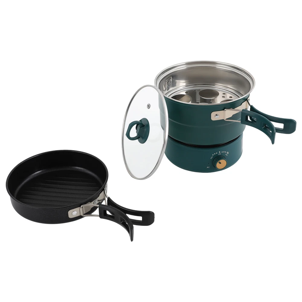 Specification Material: Plastic, 304 Stainless Steel, Glass Process: Coating, Plating Color: Green Assembly Required: No Manipulation: Knob Type Number of People: 1-2 people Plug-in Standard: US Standard Rated Voltage: 110V Rated Power: 500W Diameter of Soup Pot: 18cm/7.09in Soup Pot Height: 12cm/4.72in Soup Pot Capacity: 1.6L/0.42 gal Frying Pot Diameter: 17.2cm/6.77in Frying Pot Height: 4cm/1.57in Base Diameter: 14.8cm/5.83in Base Height: 6.8cm/2.68in Gross Weight: 1.8kg/ 3.97 lbs Net Weight: 1.6kg/ 3.53 lbs Package Size: 22*22*16cm/ 8.66*8.66*6.3in 1.6L Portable Electric Hot Soup Pot Multi-function For Steaming Boiling Frying Description Delicious food such as a sunny-side-up omelet or a tender steak is always a source of joy. Even if you are always alone, you need to take your meals seriously. This portable electric hot pot has a split design for easy storage and portability. It is also equipped with both a frying pot and a soup pot, with the multifunction of steaming, boiling, frying, and stir-frying. It can accompany you with good food to spend those times just for you alone. Key Features Multi-position Heat Adjustment: The portable electric hot pot has an 8-level temperature control function. You just need to turn the knob to set the appropriate temperature for different foods and enjoy various delicacies. High Safety: The sauce pot, frying pot, and lid are equipped with anti-scald handles, so you don't have to worry about burning your hands during cooking. In addition, it has an over-temperature dry burn automatic power-off device, which can well protect your safety when using the appliance. 360° Full Plate Heating: This product adopts a three-dimensional high-temperature heat transfer design, which makes the ingredients more evenly heated. It performs better especially in deep-fried cooking, such as frying steaks, salmon, and other meats, which can make the food look more tempting. Convenient to Clean: The frying pot features a dimpled pattern that is less likely to stick to the pot. And the inner liner of the product is coated, which makes it easier for you to complete the cleaning task. Split Design: The heating base and the pot features a split design. This is not only easier to clean but also safer to use electricity. You don't have to worry about water entering the circuit and damaging the product. And when it's not in use, you can stack the base, sauce pot, frying pot, and lid together, which is great for storage. Large Capacity: The stockpot has a large capacity of 0.42 GAL. It can hold a variety of ingredients, so you can enjoy a delicious meal for two with friends or loved ones. Stylish Appearance: The product has smooth lines and a cylindrical shape. The rounded body of the product brings a lovely feeling. It will be a unique showpiece in your kitchen. Powerful Power: The product has a high power of 500W. The powerful power can make the hot pot heat up faster, so you can enjoy food in a few minutes. Multi-functional: It is a multi-purpose cookware that can be used as a sauce pot, frying pot, or even a steamer. The two pots can be used for steaming, boiling, frying, and stir-frying. It can meet different cooking needs, so you can have multiple meals without waiting for a long time. High-quality Material: The pot body is made of food-grade 304stainless steel. It has corrosion resistance , high-temperature resistance , and healthy performance, which can effectively extend the service life of the product. Economical and Practical: The product package comes with a set of cutlery, a bamboo spatula, and two pieces of cleaning cotton. You don't need to buy extra tools to enjoy food and clean pots. Easy to Carry: The product package comes with a black storage bag, which helps you carry the product anywhere you go. Thoughtful Design: This product adopts the design of separating the pot and wire. It is not only easy to store but also can enhance the safety of using electricity. Details Multifunctional Lid: The handle of the lid can be used as a cell phone holder to free your hands, so you can catch up on TV, watch your phone, and study while you eat. The visualized lid also allows you to see the cooking status of the food more clearly, making it easier for you to master the cooking heat. Heat Dissipation Holes: The bottom of the product is configured with many heat dissipation holes, which have the performance of efficient heat dissipation and can effectively extend the service life of the product. Non-slip Silicone Feet: The product is equipped with non-slip silicone feet. It not only enhances the stability of the product but also effectively prevents the bottom of the product and the desktop from being worn. Folding Handle: It features a high-temperature resistance foldable handle, which allows you to grip more comfortably and firmly, packing away pots without stress. You can open the handle when you cook and close it after using. Application This product is suitable for single people and couples for daily meals. You can use it to cook a variety of foods such as pasta, noodles, ramen, oatmeal, and vegetables. The frying pot is excellent for frying eggs, steaks, pancakes, etc. It can meet your daily dining needs well. Specification Material: Plastic, 304 Stainless Steel, Glass Process: Coating, Plating Color: Green Assembly Required: No Manipulation: Knob Type Number of People: 1-2 people Plug-in Standard: US Standard Rated Voltage: 110V Rated Power: 500W Diameter of Soup Pot: 18cm/7.09in Soup Pot Height: 12cm/4.72in Soup Pot Capacity: 1.6L/0.42 gal Frying Pot Diameter: 17.2cm/6.77in Frying Pot Height: 4cm/1.57in Base Diameter: 14.8cm/5.83in Base Height: 6.8cm/2.68in Gross Weight: 1.8kg/ 3.97 lbs Net Weight: 1.6kg/ 3.53 lbs Package Size: 22*22*16cm/ 8.66*8.66*6.3in Package Included 1 * Glass Lid 1 * Egg Steamer Rack 1 * Soup Pot 1 * Frying Pot 1 * Base 1 * Bamboo Spatula 1 * Storage Bag 1 * Power Cord 2 * Cleaning Cottons 1 Kit * Dinnerwares Notes For proper heating, check that