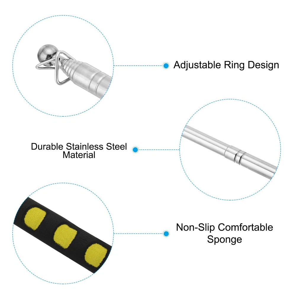 Specification: Color: Yellow; Material: Stainless; Extended Length: 1.6M/5.2Feet; Non-Extended Length: 26cm/10.1inch;8 Sections Telescoping, The max weight of the applicable flag is 3.53 Oz / 0.1kg; Package List: 1Set x Telescopic Handheld Flagpoles Advantage: Durable Material: Its handle is made of stainless steel, which is not easy to rust and deform and has a long service life. Telescopic Handle: The joints is carefully designed, and each section is reinforced and tightly connected to ensure stable and non-sloshing during use. After stretching, there is no need to worry about automatic shrinking back. Adjustable flexibility. The pole head has two flag buckles for easy flag hanging. Stainless steel flagpole normally use for guide flagpole, teacher indicator pole, conference indicator pole, sand table indication pole, exhibition instructions pole. Sponge Handle Design: Sponge Handle Design: Sponge handle does not slip, making your grip more comfortable. Instruction: Adjust the length of the pointer based on distance. NOTE: Please note the size of the product before purchasing.