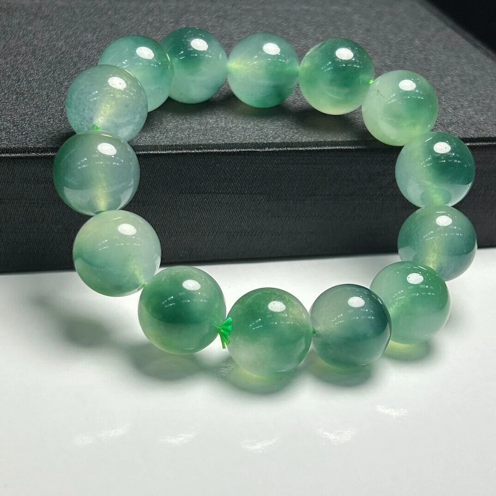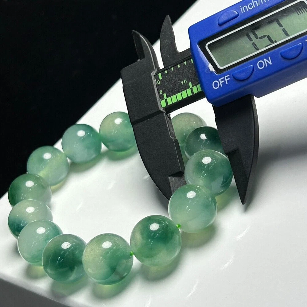 16MM Certified Natural ice Green Myanmar Beads Jade jadeite Bracelets Bangle