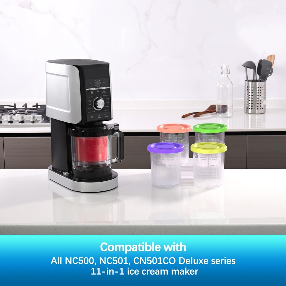 for Ninja Creami Pints and Lids-4 Pack, 16OZ Container Compatible with NC299AMZ & NC300s Series Ice Cream Makers, Extra Cups Replacement for Ninja Creamy Containers Airtight Anti-slip Dishwasher Safe Size: 16OZ Original Pints-4 Pack Brand DENEBORE Color Grey Material Plastic Material Feature Reusable, Food Grade Capacity 16 ounces About this item DENEBORE pints and lids - 4 pack compatiable with Creami Ninja ice cream maker machine : NC300, NC301, CN305A, CN301CO, & NC299AMZ NC290 series. ( NOT NC100/ NC200 Breeze and NC500 Deluxe series ) Airtight sealing and leak-proof lids secure frozen treats fresh, making DENEBORE creami pint containers perfect for storing home made ice cream from -22°F to 302°F (-30°C to 150°C) Made with heavy-duty, food-grade material, ice cream containers are reusable and durable, providing endless happiness for ninja creami lovers Both creami cups and lids are easy to clean and dishwasher safe for hassle-free cleaning, perfect for enjoying the ninja creamy game DENEBORE creami ice cream maker pints with 4 pack Grey lids offer extra options for customizing your own frozen treats. Easy transform to smoothy and yummy treats within few minutes What's included: (4) 16 oz pints, (4) lids , instruction sheet and 100+ flavor E-cookbook. (Item does not ship to Miami&Doral, FL), have any problem please contact us !