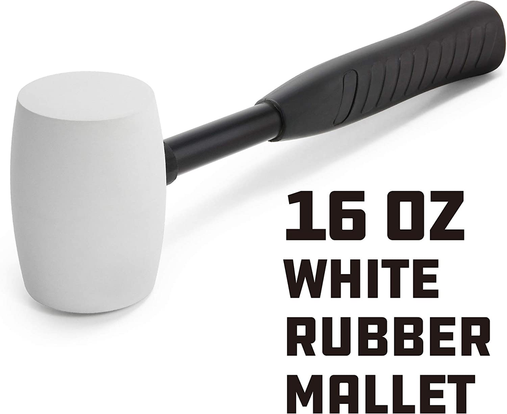16-Ounce White Rubber Mallet with Non-Slip Steel Handle - Durable Hand Tool 648336