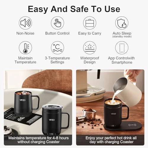 30 Days Return Policy Fast Delivery Trusted seller 16Oz Temperature Control Smart Mug, Self Heating Coffee Mug LED Display, 180 Min Battery Life - Hot up to 149℉ Fast Wireless Charger Base Improved Design coffee serving sets mug(16oz, Black) Product Description ☕【Improved Design】 With a patented heating technology, it can heat without coaster. When no water, the mug will automatically stop heating for safety. This smart coffee thermos mug works with 4000Ah high-capacity polymer lithium battery, smart mug can last 2-5 hours, It can keep the drink warm all day long when on the charging coaster, The heating temperature range is 95-149℉. Keep Your Coffee Temperature Constant, keeps your coffee hot for hours. ☕【Perfect Gift】The Ultimate Gift for Coffee Lovers Coffee mugs are suitable for home, travel, office, lounge, bar, restaurant and many other occasions. Give this temperature-controlled heated coffee mug to a loved one, friend, or family member as the perfect Mother's Day, Father's Day, Christmas, Birthday, Anniversary, or bachelor/bachelor party gift! It's a must-have for any camper, coffee lover, RV enthusiast, traveler, working professional or anyone looking for an electric mug. ☕【Expertly Crafted】 Elegant ceramic matte finish covers the durable, stainless-steel body of the mug. Comfortable to hold at only 16 ounces, the ergonomically designed body and handle fits perfectly in your hands.This self warming coffee mug has two methods of temperature control for you to choose from.You can adjust the temperature directly through the touch button on the smart coffee mug and the APP on your phone. Convenient and fast, you can drink hot coffee anytime, anyw. ☕【What problem are we solving】 was created to solve a simple, yet universal problem for coffee and tea drinkers. It all came from a disappointing, room-temperature cup of coffee and has grown into an elevated hot beverage experience.Temperature Control Smart Mug keep your coffee, tea, hot chocolate, chai, cider, mulled wine and other beverages at the perfect temperature! ☕【From the brand】 is a senior brand in the field of coffee warmer, with its own production line and brand quality service. Our unique appearance design and functions have also attracted a large number of loyal customers. We will also be committed to providing customers with a good shopping experience and services and will continue to introduce other new products in the future. Welcome to enjoy a wonderful and colorful life with . Shipping Returns Payment Shipping Shipping is FREE to all addresses other than APO/PO boxes in the lower 48 states. All our stock ships from US-based warehouses. Shipped via USPS or UPS (depending on location and package weight) Unless stated otherwise, all orders will ship within 24-72 hours of your payment being processed. Check our feedback to see the great reviews of FAST shipping we offer. Returns As our valued customer, we will do our best to make sure the product you receive arrives to you on time and as expected. If you are not satisfied with your purchase, please contact us within 30 days of receiving your order to process a return. Payment We currently accept payment via eBay managed payments only. Once payment is cleared, we will dispatch your shipment within 1-3 business days. Please refer to the "Shipping" tab for more information regarding shipping speed to your destination.