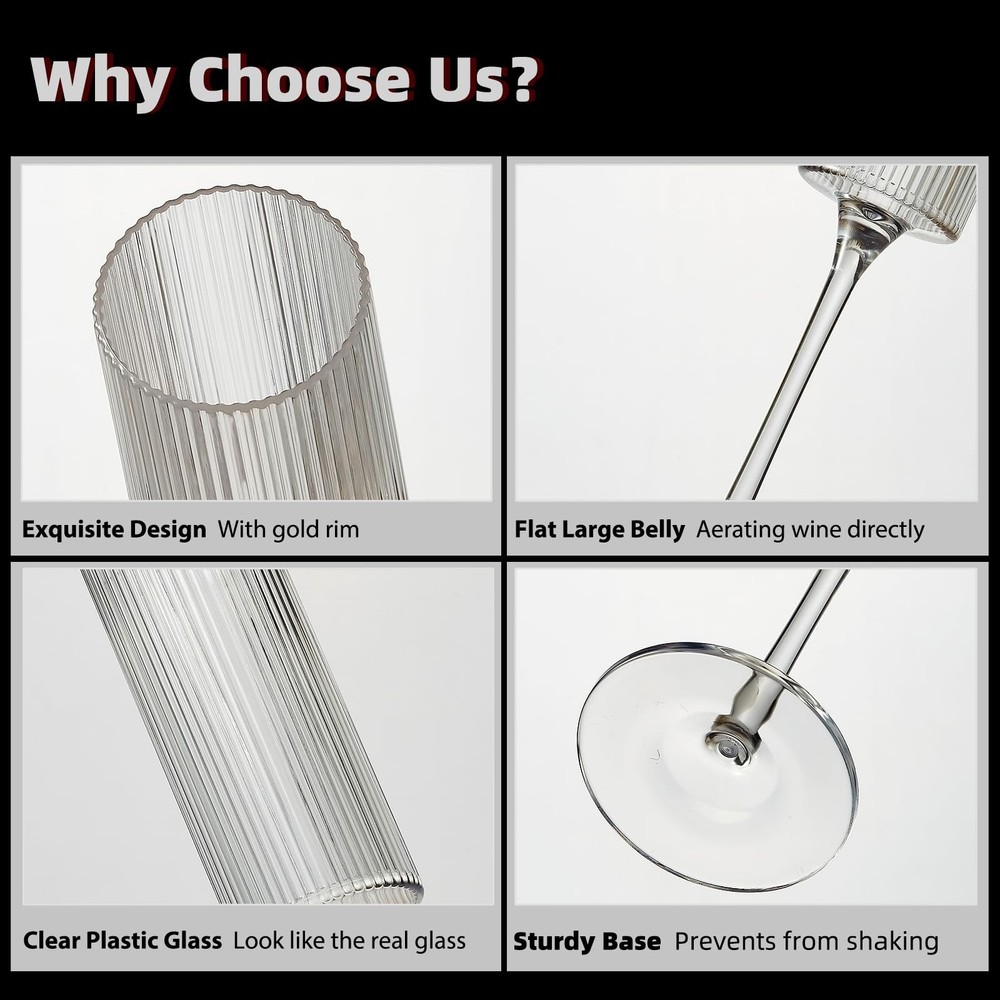 16-Pack Ribbed Acrylic Champagne Flutes 5.5oz Shatterproof Goblets