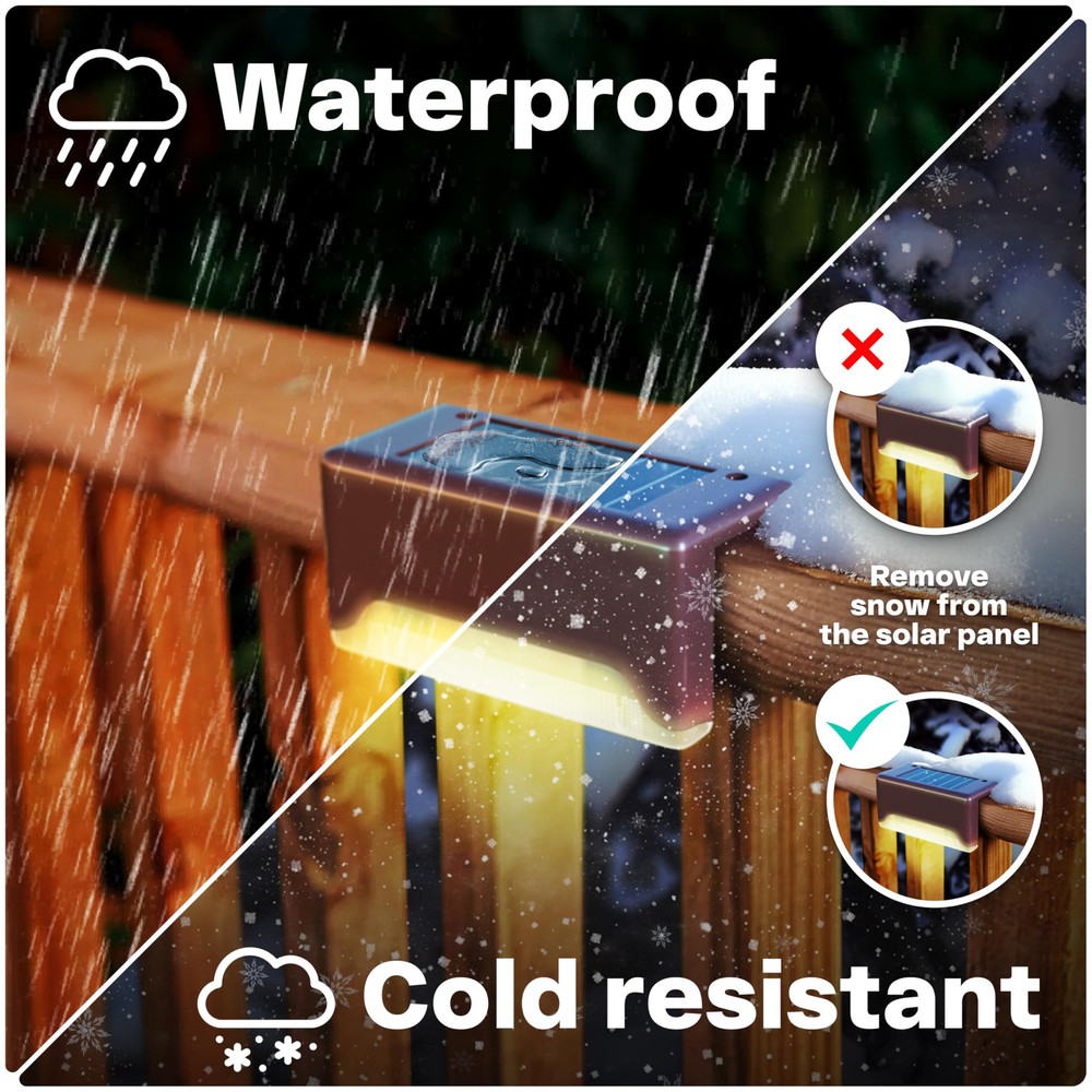 Loving these solar deck lights! They add a cozy, warm glow to my patio without being too bright. Super easy to install—just stick them in, no wiring needed. The waterproof design is solid, surviving storms without a problem. Charges quickly in sunlight and lasts all night. Perfect for creating ambiance, lighting pathways, or sprucing up the deck. Great value for a 16-pack—durable, energy-efficient, and stylish. Highly recommend for effortless outdoor lighting!