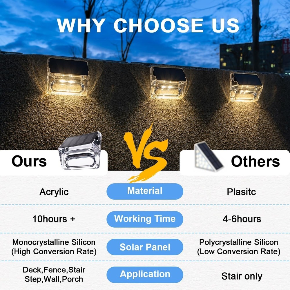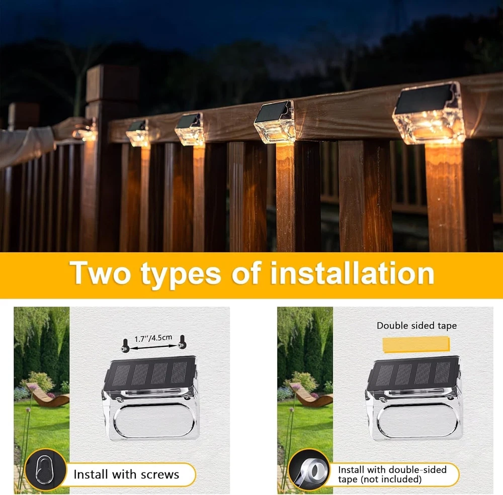 Control Method: Touch Number of Lights: 16 Room Type: Outdoor Light Fixture Form: Wall Product Dimensions: 3.1"l X 2.7"w X 1.2"h Theme: Garden Sensor Type: Light Shade Material: Acrylic Light Color: Warm White Style: Classic gtin13: Does not apply Brand: Unbranded Number Of Items: 16 Mounting: Wall Mounted Control Style: Touch, Automatic Switch Type: Automatic Lighting Technology: LED Power Source: Solar Color: Warm White Controller Type: Remote Control Specific Uses For Product: Garden Features: Waterproof, Automatic, Wireless, LED, Touch control Unit Count: 16.0 Count Included Components: Led Lens Installation Area: Outdoor Lighting Method: Led Shape: Rectangular Number Of Light Sources: 16 Installation Type: Wireless Type: Fence Light UPC: Does not apply Water Resistance Level: Water Resistant IP Rating: IP65 Indoor/outdoor Usage: Outdoor Item Weight: 3.91 pounds Light Source Type: Led Material: Acrylic, ABS Efficiency: Up To 25% Conversion Rate Number of Settings: 1 Special Feature: Waterproof Size: Small