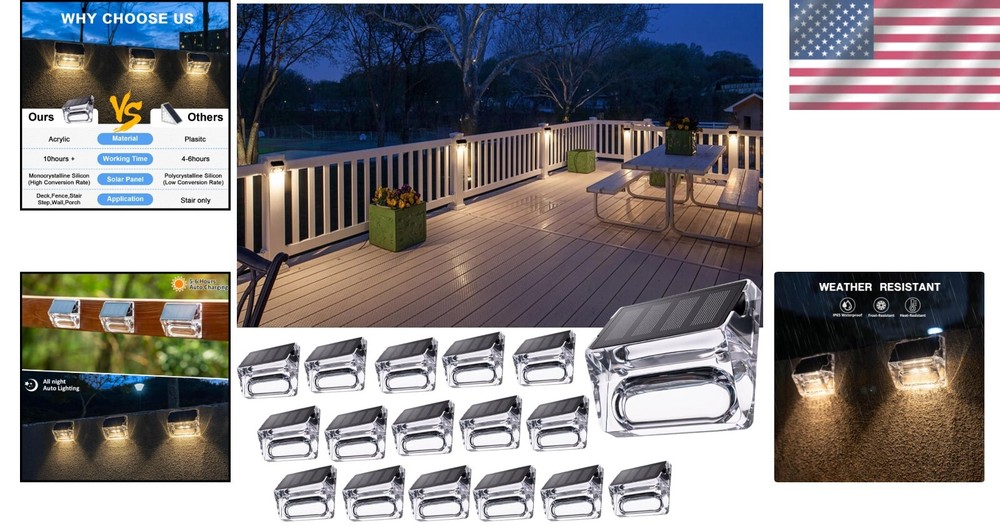 16-Pack Waterproof Solar Lights for Deck & Garden Illumination