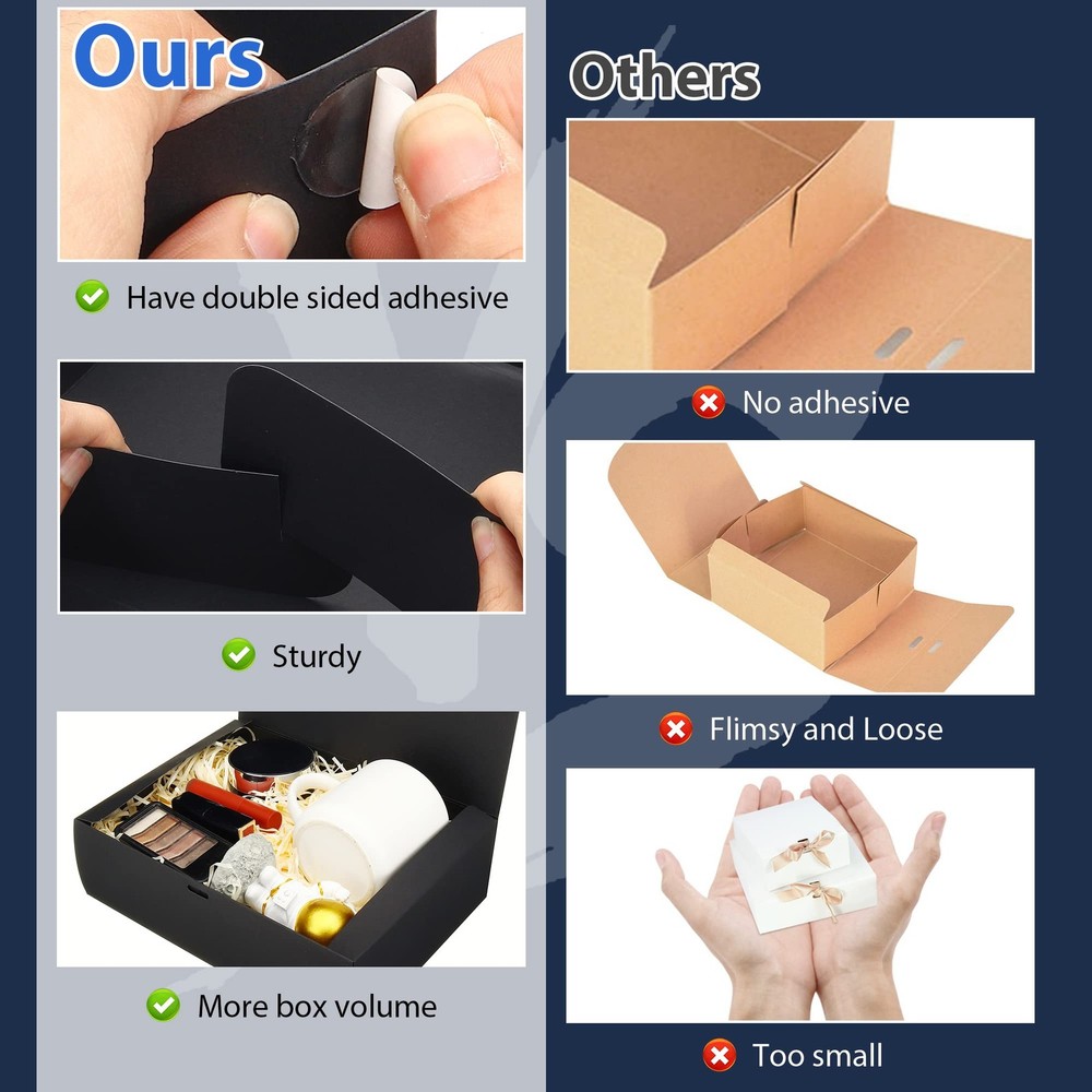 These gift boxes are absolutely perfect for any occasion! The blue kraft paper is sturdy and elegant, especially with the gold ribbon accents. The included adhesive dots keep the lids secure—no more loose tops! At 10.6x7.8x3.1 inches, they’re spacious enough for wedding favors, bridesmaid gifts, or holiday presents. The set comes with 16 boxes and 70 adhesive dots, making wrapping effortless. Great for birthdays, baby showers, or graduations—versatile and beautifully designed. Highly recommend for anyone who loves stylish, hassle-free packaging!
