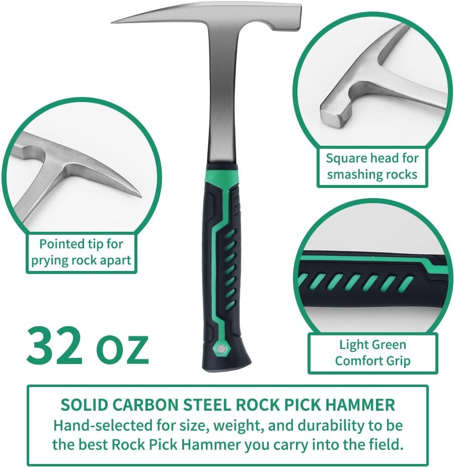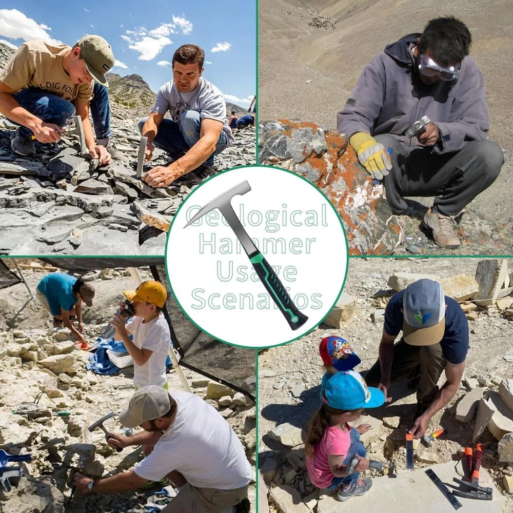 16-Piece Geological Rock Hammer Kit, Portable 32-ounce Hammer and Chisel Back...