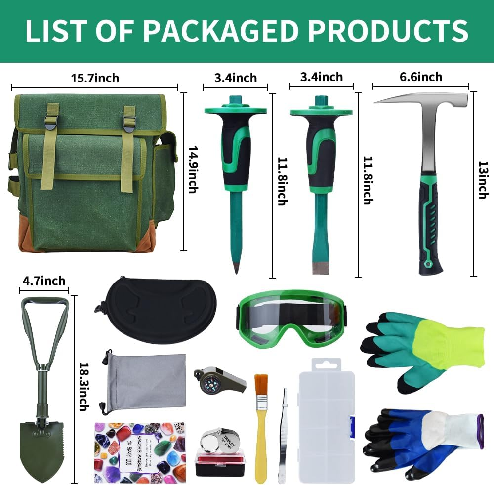 Fast Shipping On All Items 30 Days Money Guarantee Customer Support Excellent Service 100% Satisfaction Satisfaction Guaranteed 16-Piece Geological Rock Hammer Kit, Portable 32-ounce Hammer and Chisel Back... Specification Item model number AW12 Batteries Required? No Head Material Alloy Steel Number of Items 16 Power Source Hand Powered Color Green Grip Type Ergonomic Item Weight 4.59 Kilograms Handle Material Rubber Head Style Flat Batteries Included? No Package Dimensions 15.75 x 12.09 x 6.57 inches Included Components chisels, goggles, hammer, jeweler's loupe,whistle,gloves, shovel 12.09 inches x 15.75 inches x 6.57 inches. Weight: 4.59 kg Item Description The tool kit includes a large canvas backpack, 32-ounce hammer, pointed chisel, flat chisel, multi-functional shovel, safety goggles, goggles case, jeweler's loupe, three-in-one whistle, two pairs of gloves, an 8-grid small box, waterproof bag, brush, and tweezers. It has all the equipment you need! Safe and Convenient Backpack: The YTYLSJ geological tool kit comes with a backpack that has thick padding to protect the wearer from sharp tools. Elastic straps inside the bag keep the tools in place, while the roomy design allows you to carry a packed lunch, gold panning equipment, and all the rocks, minerals, gems, gold and fossils you find. Complete Starter Set: This tool kit set is perfect for budding rock lovers, geology students, and beginners in paleontology or archaeology. It brings together all the tools you need to start exploring the world of rocks and fossils. Durable and High-Quality Tools: The YTYLSJ geological tool kit includes a pointed chisel, flat chisel, and a steel cordless drill made of chrome vanadium steel.The steel cordless drill has a one-piece all-steel shank construction with a fully polished finish and an additional rust-resistant clear coat for maximum strength and durability.The rock drilling hammer adopts a one-piece forged all-steel head handle structure, and the non-slip rubber handle is ergonomically designed for comfortable use. Lightweight Goggles: The goggle frame in the geological tools set is made of PVC, which is light and not easy to slip off. The adjustable elastic band design is convenient for fixing the head circumference, making these goggles ideal for extended use. Product description About us We offer the best prices around on high quality products. Our E-store includes media such as books, movies, music and games while offering electronics, toys, sporting apparel, clothing, tools, general home, garden items and more. Shipping We are always working hard to ensure your package arrives as soon as possible. Please understand that some factors like weather, high postal traffic, and the performance of shipping companies are outside of our control. We offer free shipping to the lower 48 states and ship within 2-3 business days of payment, usually sooner. We do not accept P.O. Boxes. Please provide a physical address. For shipping outside of the continental USA, we only use eBay's Global Shipping Program.The item is shipped to KY and then sent to the rest of the world. International customers are responsible for all duties and taxes. Continue to check out to calculate costs for shipping the item to your country. Messages regarding eBay's Global Shipping Program MUST be directed at eBay EXCLUSIVELY. Returns We offer a 30-Day Return Policy on items in which you are not completely satisfied with. You have the option of a full-refund or an exchange of the item. No returns are available on items shipped outside of the USA Satisfaction We try over very best to make sure every customer is completely satisfied. If there's a problem, message us! We're happy to help. Payment Options Shop With Confidence