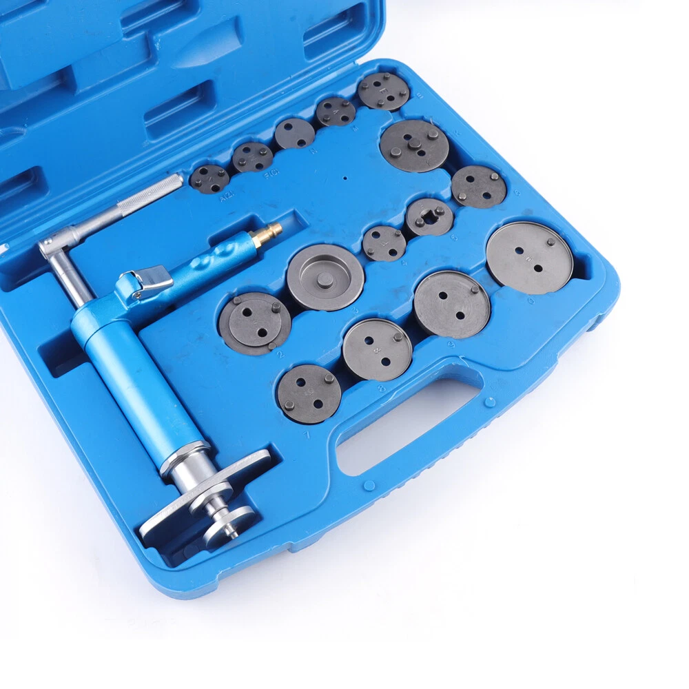 16pcs Disc Brake Caliper Piston Wind Back Tool Kit Pneumatic Rewind Air Powered 16 pcs Disc Brake Caliper Piston Wind Back Tool Kit Pneumatic Rewind Air Powered Specification: color: blue Material: carbon steel Packing size: 43*8*32cm Package Weight: 3.02kg Scope of application: mechanical repair, home, car repair For air pressure assisted resetting of brake pistons Hand lever for rotary function, suitable for left and right turn Also suitable for brake calipers with hand brake function Suitable for the following vehicles: Alfa Romeo, Audi, Citroen, Fiat, Ford, GM, Honda, Jaguar, Lancia, Land Rover, Mazda, Nissan, Peugeot, Renault, Rover, Saab, Seat, Subaru, Toyota, Volvo, VW The package includes: 1X pneumatic disc brake pump return tool Payment Delivery details Terms of sales About us Contact us Payment We accept ebay payment 。 Fees such as import duties, taxes are not included in the item price or shipping costs. These charges are the buyer's responsibility. Delivery details Shipping: 2-9 working days to: USA Terms of sales We maintain high standards of excellence and strive for hundred percent customer satisfaction. Feedback is very important to us. We hope that you contact us immediately before you give neutral or negative feedback, so that we can address your concerns. It is impossible to address issues if we do not know about them! About us Your satis faction is our ultimate goal. We work hard to earn your trust and future business. Our certified technicians have tested each item before shipping. The unit comes with 1 year limited warranty on all manufacturing defects. a) If you receive a defective item, you may return it or ask for a discount. Please contact us within 14 days after you receive the package. b) What you returned must be intact and in its original packaging as re? u. Customer is responsible for shipping costs of the returned item. c) We will cover the cost of shipping back t with the shipping rate indicated in the registration page. We will send you a new unit or refund the full payment you paid. Thank you. Contact us Business Hour Business Hour: Monday To Friday: 8:30 AM to 5:00 PM (Beijing China time) Due to time zones, our reply to your questions may not be immediately. But within above working time, we will reply your email within 24 hours. If it's non-workdays, please kindly be patient and wait till Monday. Please contact us with ebay message. Please feel free to contact us if you have any questions. Monday To Friday: 8:30 AM to 5:00 PM (Beijing China time) Due to time zones, our reply to your questions may not be immediately. But within above working time, we will reply your email within 24 hours. If it's non-workdays, please kindly be patient and wait till Monday. Please contact us with ebay message. Please feel free to contact us if you have any questions. Feature : Durable,Original size design fits perfectly shipping notice Can not ship to Puerto Rico,Alaska/Hawaii Brand Unbranded color blue Material carbon steel Packing size 43*8*32cm Package Weight 3.02kg Manufacturer Part Number Does Not Apply Type Wind Back Tool