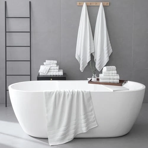 $ 31.25100% Cotton Luxury 8-Piece White Bathroom Towel Set