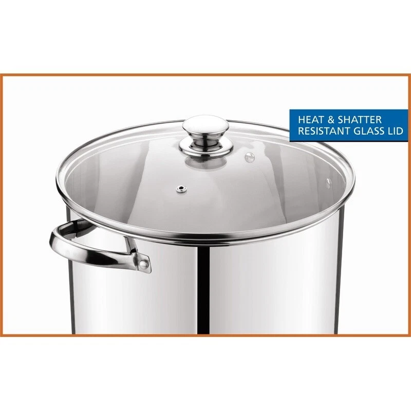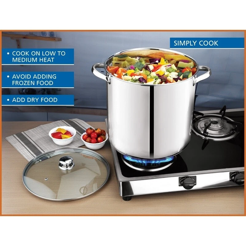 Prepare amazing sauces, soups, pastas, and more with the sizable Stainless Steel 16-Quart Stock Pot with Glass Lid. This extra-large stock pot measures 11. 02”L x 11. 02”W x 10. 63”H and is perfect for cooking family meals for any occasion. Designed with stylish stainless steel and glass, it’s sure to coordinate with your existing cookware. This sturdy stock pot features stay-cool handles and a helpful, transparent glass lid, along with durable, stainless steel construction. Ideal for helping you feed your family and friends at get-togethers, backyard barbecues, celebrations, and other special events, the Stainless Steel 16-Quart Stock Pot with Glass Lid is a must-have cookware item in any kitchen. Stainless Steel 16-Quart Stock Pot with Glass Lid, Induction Compatible, Stainless Steel, Dishwasher Safe Sizable stock pot is perfect for preparing amazing sauces, soups, pastas, and more Dimensions: 11. 02”L x 11. 02”W x 10. 63”H Weight: 4. 84 lbs Induction safe for versatile cooking options Constructed from durable stainless steel with a transparent glass lid