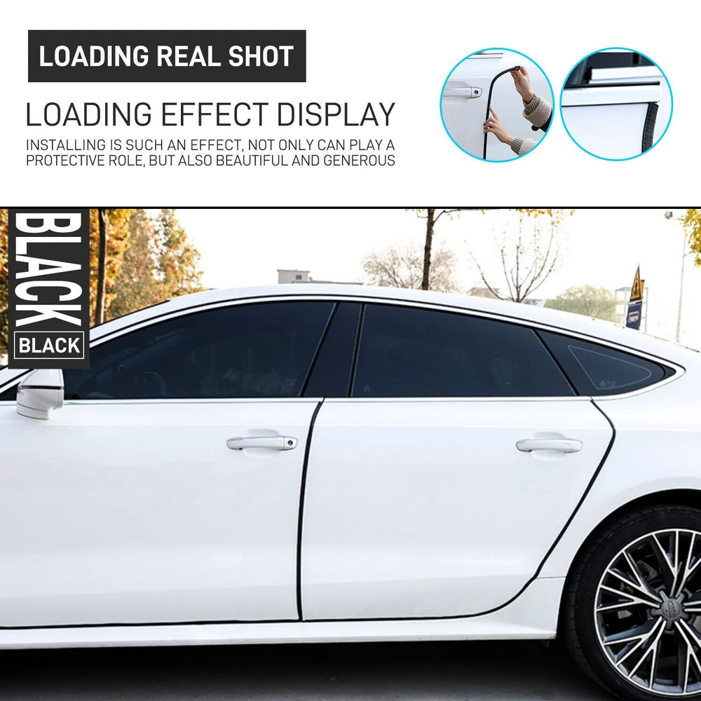 Specifications: Material: EPDM Rubber + Stainless Steel Clips Color: Black Length: 16 Feet / 5 Meters Package Included: 1 x 16ft/5m Car Door Trim Edge Protector The length recommanded for installation: For car : 4 Doors Edges: 5m; 4 Door Edges+ 4 Door Bottom Edge: 10m; 4 Door Edges+ 4 Door Bottom Edge+Trunk+Hood: 15m For SUV: 4 Doors Edges: 5m; 4 Door Edges+ 4 Door Bottom Edge: 15m; 4 Door Edges+ 4 Door Bottom Edge+Trunk+Hood: 20m Just For reference. It is strongly recommended to take the actual scale as the standard