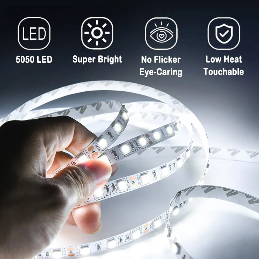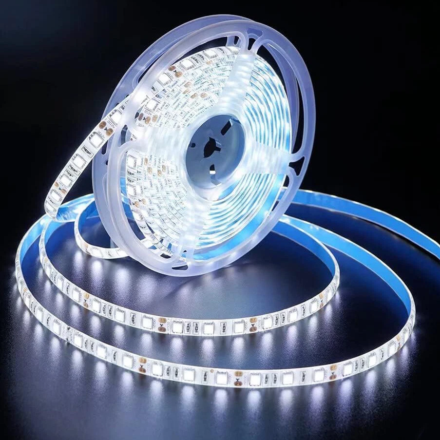 16ft Super Bright Cool White 6000K LED Strip Light 5050 300LEDs Flexible DC 12V