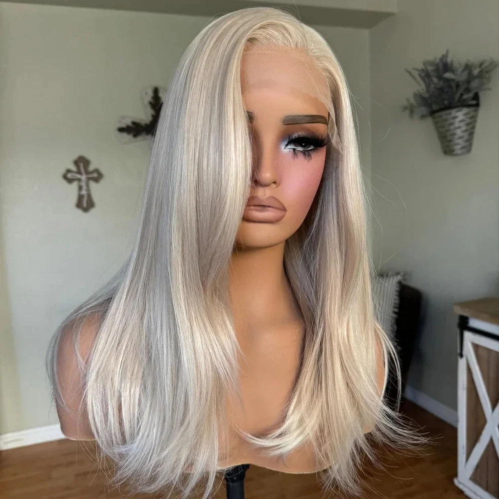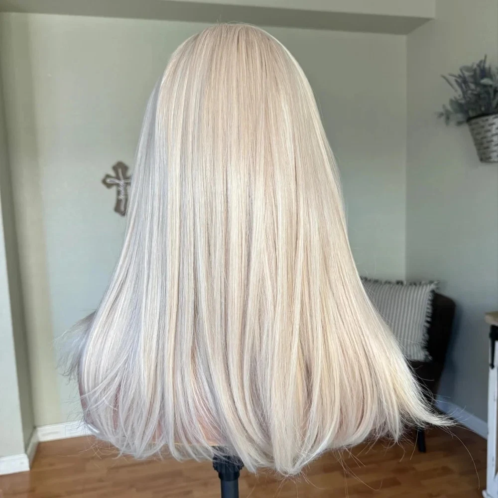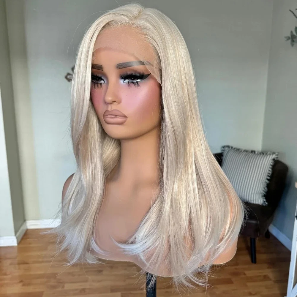 16inch Straight Platinum Blond Wigs 13x4 Lace Front 100% Human Hair Wigs