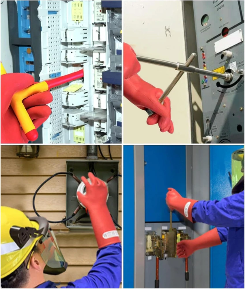 Rubber Insulated Work Gloves for Electricians Flame Retardant 400V Protection