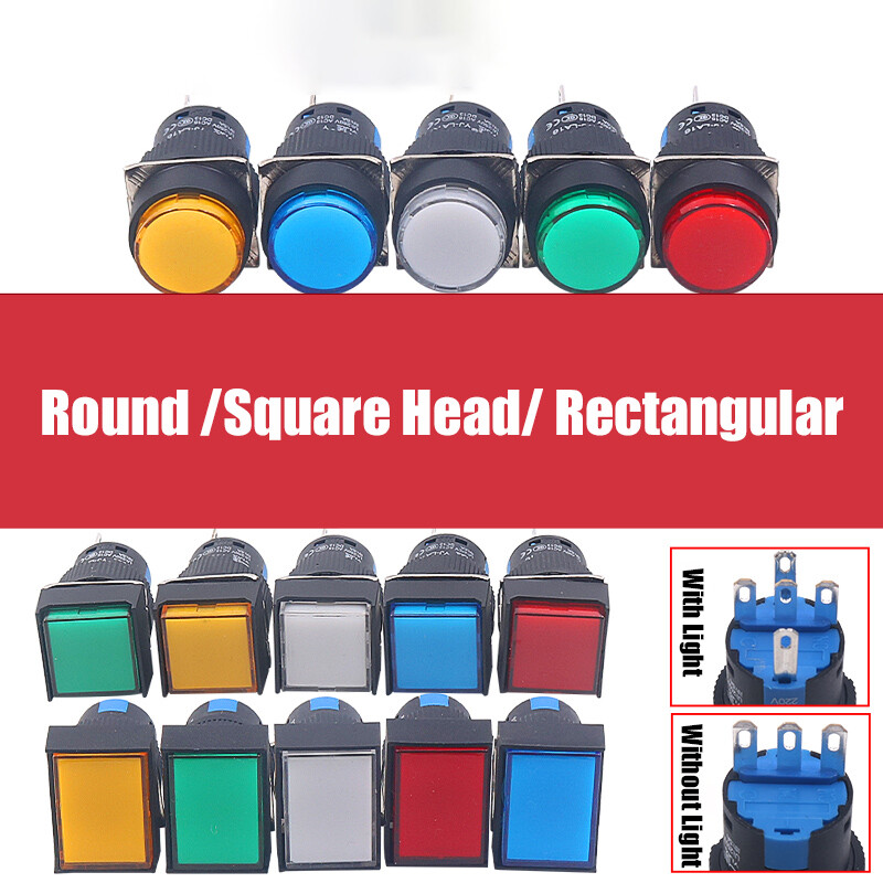 16mm Momentary Latching Push Button Switch in White Red Green Yellow Blue