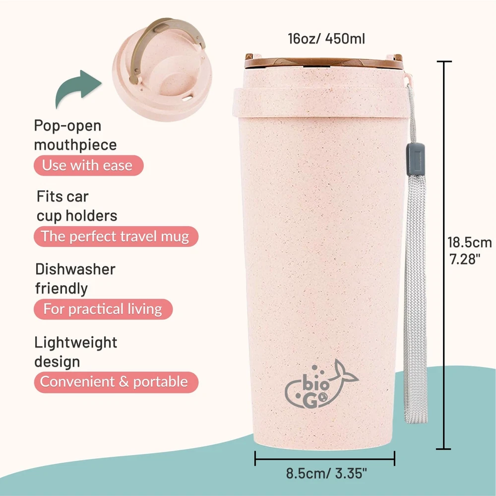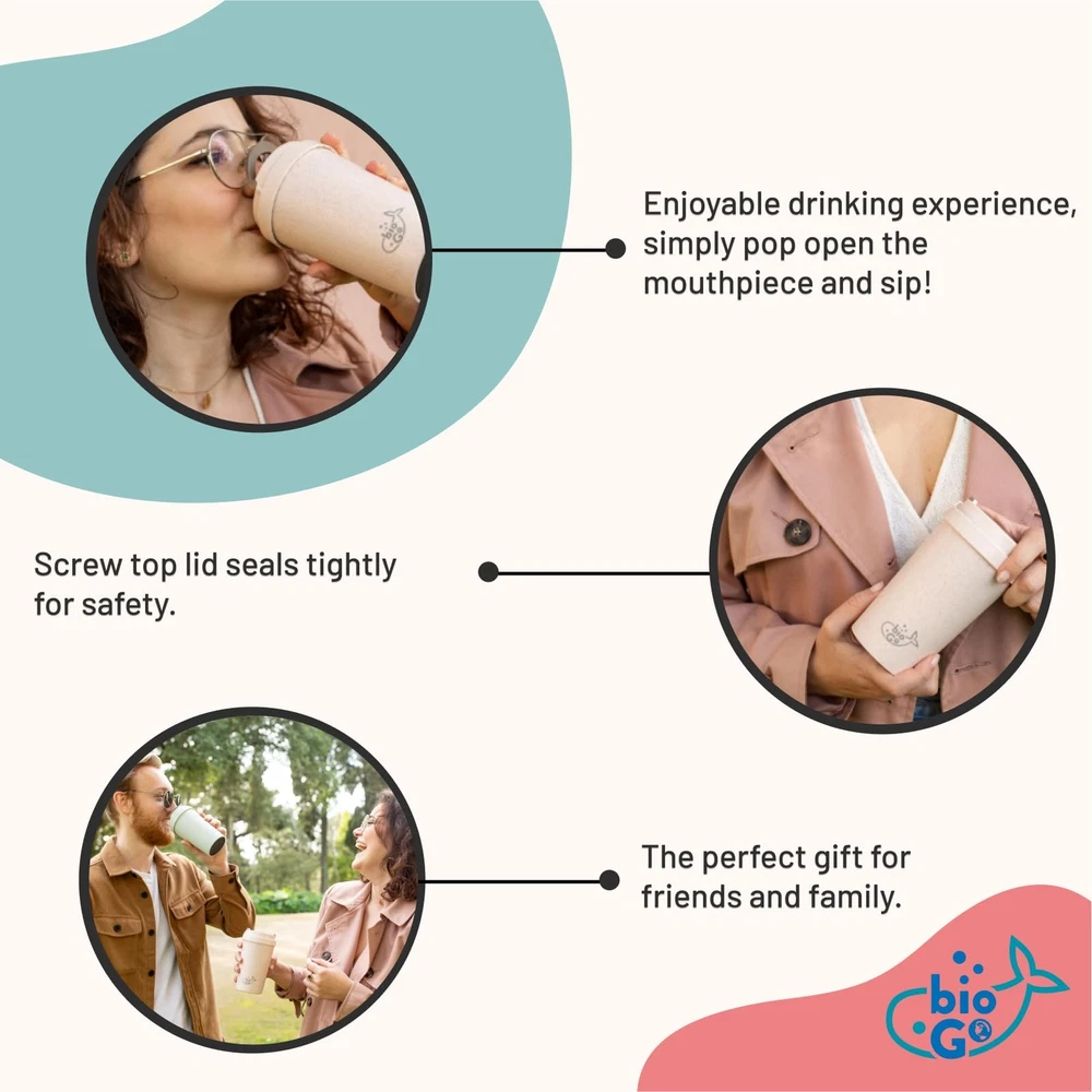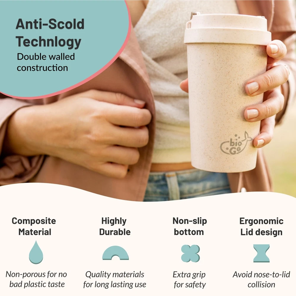 The wonderful cup. ANYTIME, ANYWHERE: Our portable coffee mug will feel at home on an office desk, the gym, or even a campsite. They fit in car cup holders. Great for coffee, a variety of teas, soft drinks and fresh water. Keeps drinks cold as well as hot. Handle can double up as a carabiner REUSABLE CUP: Each cup stops over 4,000 single-use cups being made. Our reusable coffee cups with lids help reduce waste ERGONOMICALLY DESIGNED: Specially designed with a "nose-dome" to avoid that annoying nose-to-lid collision. Won' t burn your hands so no need for a silicone sleeve! The mouthpiece makes drinking a pleasure by controlling the flow of liquid. A perfectly designed microwave safe coffee mug INCREDIBLE QUALITY: The composite material allows for a lightweight, seriously strong & heat insulating cup with no awful plastic taste. Enjoy your drink as intended with our coffee travel mug CONVENIENCE + ECO: Easy to drink from, incredible anti-scald technology & dishwasher friendly. Convenience culture meets environmentally friendly. Together we can help end single-use plastic with microwavable coffee tumbler with lid!