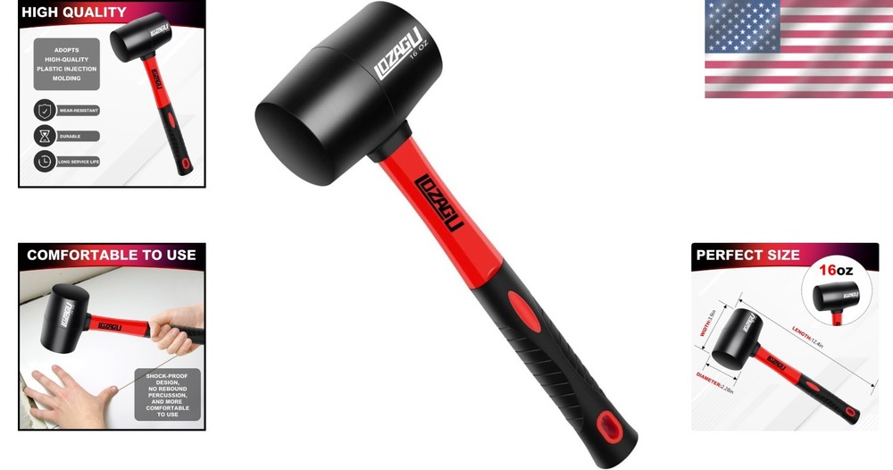 16oz Rubber Mallet Hammer with Fiberglass Handle for Precision Soft Blow Tasks ‹ › ‹ › ‹ › ‹ › ‹ › ‹ › ‹ › 16oz Rubber Mallet Hammer Perfect for Precision Soft Blow Tasks Features: Durable Construction: The 16oz mallet head is crafted from high-quality rubber, ensuring long-lasting performance even under heavy use. Shockproof and Wear-Resistant: Designed with a double percussion surface, this rubber hammer is engineered for versatility and longevity, making it ideal for any task. Fiberglass Handle: Our handle combines PP and TPR materials, significantly reducing vibration and minimizing arm strain, granting you greater control while working. Firm Connection: Featuring a nonslip rubber grip, the handle is expertly integrated for added safety, ensuring it remains securely attached during every use. Versatile Applications: Perfect for camping adventures, flooring projects, tent stakes, woodworking tasks, and any soft blow application. Utilizes its gentle impact to prevent damage while providing the force you need. Why Choose Our 16oz Rubber Mallet Hammer? When it comes to a reliable tool for precision soft blow tasks, look no further than our 16oz Rubber Mallet. Crafted from materials and designed for extreme usability, this mallet is essential for anyone looking to perform delicate work without the risk of damage. Its shock-absorbing handle and non-slip grip empower you with control while reducing strain, making every job easier. Whether you're a professional or a DIY enthusiast, this hammer will be a valuable addition to your toolkit. Don't compromise on quality—experience the difference in your next project with our 16oz Rubber Mallet Hammer! Shipping Free & Fast Shipping - We offer free shipping to most of the USA with a normal delivery time of 3-7 days. However, due to the current situation, additional delivery time (up to 3 weeks) may be required for some items. Alternative Carriers - We may use alternative carriers (e.g. USPS, FedEx, UPS, etc.) to ensure your package arrives safely and on time. Due to the use of multiple carriers, we are unable to provide a tracking number automatically. Handling Time - Orders are processed and shipped within 1-2 business days of receiving cleared payment. Shipping Restrictions - Shipping to Alaska, Hawaii, Puerto Rico, Guam, and other US territories may incur shipping charges or delivery restrictions. Please contact us before ordering, or your order can be refunded/cancelled. State Restrictions - There may be restrictions based on your state of purchase. For example, certain items may not be shipped to California due to state regulations. Contact for Tracking Updates - If you require tracking updates or have any concerns about the delivery of your order, please feel free to contact us, and we will be happy to assist you. Return 30-Day Hassle-Free Returns - We want you to be completely satisfied with your purchase. If you are not, you can return the item within 30 days of receiving it for a full refund or exchange. Easy Return Process - To start a return, simply contact us and we will provide you with a prepaid return shipping label and detailed instructions. Restocking Fee - There are no restocking fees for returns. However, the buyer is responsible for return shipping costs if the return is not due to a seller's error. Refund Processing Time - Refunds will be processed within 5 business days of receiving the returned item in its condition. Payment We accept all major credit cards, PayPal, and Apple Pay for your convenience. Your payment information is secure and encrypted to ensure a safe and seamless transaction. Please complete your payment within 3 days of purchase to avoid any delays in shipping. Feedback Your feedback is extremely important to us. We strive to provide the best products and customer service possible. If you are satisfied with your purchase, please take a moment to leave us a positive review. If you have any concerns or issues with your order, please contact us before leaving negative feedback. We are committed to resolving any problems and ensuring your satisfaction. Contact Us If you have any questions or concerns, please feel free to out to our customer support team. You can contact us through the eBay messaging system. We are available Monday to Friday, 9:00 am to 5:00 pm EST, and we will do our best to respond to your inquiry within 24 hours. Buy it now and enjoy a pleasant shopping experience! Model: Rubber Mallet Item Width: Rubber Mallet Item Length: Rubber Mallet Item Height: Rubber Mallet Item Diameter: 2.3 in Item Weight: 16 oz Unit Quantity: 1 Handle Material: Fiberglass,Rubber Type: Rubber Mallet Head/Face Material: Rubber Number of Pieces: 1 Handle Size: 2.3 in Color: Black