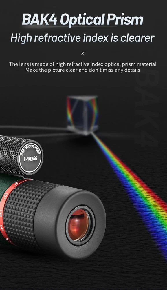 Free and fast shipping , shipping take up 1-7 Business Days 30 Day Return Accepted EASY PAYMENT via PayPal, Credit Card, PayPal Credit, Google Pay... 16x Zoom Monocular Telescope Hunting Plastic Multicolor Waterproof Modern Bak4 ASKCO 8-16X56 ED Glass Monocular Telescope SMC Coating Long Range IPX7 Zoomable BAK4 Portable Anti shake Binoculars for Hunting REVIEWS The product came very well packaged. I'm very happy. thank you for everything. Seller strongly recommended. This is great! I definitely recommend! Product looks amazing Delivery was fast. Excellent seller, great communication. I advise everyone to buy it!