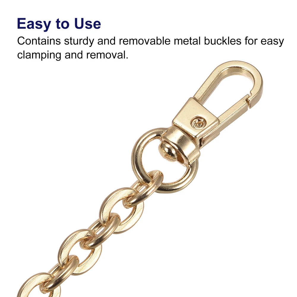 Document Descriptions:The chain strap with a suitable size for you to match with your bag. The length of the chain is 400mm (15.75 inch), the width of the chain is 6mm (0.24 inch), and the weight is 25g.Made of iron material that is thick and strong, with high hardness, and has perfect corrosion resistance. Surface plating is not easy to oxidize and fade.Contains two sturdy and removable metal buckles on both sides of this chain. You just easily clamp the buckles to your bags' D-ring. If you don't need this chain, you also can easily remove it from your bag.This chain strap can be used as a bag strap for bag accessories and decorations such as tote bags, handbags, purses, cross body bags, shoulder bags, etc. Instead of a one-size-fits-all style, you can design new bags with different looks and styles.Product Specifications:Material: IronColor: Gold ToneFinish: ElectroplatingLength: 400mm/15.75"Width: 6mm/0.24"Weight: 25gUsed for: Bag Replacement StrapPackage Included:1Pcs x Iron Flat Chain StrapWarm Tips:Because the connection between the chains is too thin, it may catch hair. Beware of it and buy it with caution. Also, please check that our chain length is the right size for your bag before ordering. 16"x0.24" Purse Chain Strap, Purse Handle Shoulder Replacement Strap(Gold) Descriptions: The chain strap with a suitable size for you to match with your bag. The length of the chain is 400mm (15.75 inch), the width of the chain is 6mm (0.24 inch), and the weight is 25g. Made of iron material that is thick and strong, with high hardness, and has perfect corrosion resistance. Surface plating is not easy to oxidize and fade. Contains two sturdy and removable metal buckles on both sides of this chain. You just easily clamp the buckles to your bags' D-ring. If you don't need this chain, you also can easily remove it from your bag. This chain strap can be used as a bag strap for bag accessories and decorations such as tote bags, handbags, purses, cross body bags, shoulder bags, etc. Instead of a one-size-fits-all style, you can design new bags with different looks and styles. Product Specifications: Material: Iron Color: Gold Tone Finish: Electroplating Length: 400mm/15.75" Width: 6mm/0.24" Weight: 25g Used for: Bag Replacement Strap Package Included: 1Pcs x Iron Flat Chain Strap Warm Tips: Because the connection between the chains is too thin, it may catch hair. Beware of it and buy it with caution. Also, please check that our chain length is the right size for your bag before ordering. Hot Item Payment 1.We accept eBay payment . 2.Payment must be received within 7 business days of auction closing. Shipping 1.We ship to your eBay or Paypal address. Please make sure your eBay and Paypal address is correct before you pay. 2.Items will be shipped within 1-3 business day when we received payment. 3.Delivery time depends on destination and other factors. Description Policy 16"x0.24" Purse Chain Strap, Purse Handle Shoulder Replacement Strap(Gold) Descriptions: The chain strap with a suitable size for you to match with your bag. The length of the chain is 400mm (15.75 inch), the width of the chain is 6mm (0.24 inch), and the weight is 25g. Made of iron material that is thick and strong, with high hardness, and has perfect corrosion resistance. Surface plating is not easy to oxidize and fade. Contains two sturdy and removable metal buckles on both sides of this chain. You just easily clamp the buckles to your bags' D-ring. If you don't need this chain, you also can easily remove it from your bag. This chain strap can be used as a bag strap for bag accessories and decorations such as tote bags, handbags, purses, cross body bags, shoulder bags, etc. Instead of a one-size-fits-all style, you can design new bags with different looks and styles. Product Specifications: Material: Iron Color: Gold Tone Finish: Electroplating Length: 400mm/15.75" Width: 6mm/0.24" Weight: 25g Used for: Bag Replacement Strap Package Included: 1Pcs x Iron Flat Chain Strap Warm Tips: Because the connection between the chains is too thin, it may catch hair. Beware of it and buy it with caution. Also, please check that our chain length is the right size for your bag before ordering. Hot Item Payment 1.We accept eBay payment . 2.Payment must be received within 7 business days of auction closing. Shipping 1.We ship to your eBay or Paypal address. Please make sure your eBay and Paypal address is correct before you pay. 2.Items will be shipped within 1-3 business day when we received payment. 3.Delivery time depends on destination and other factors.