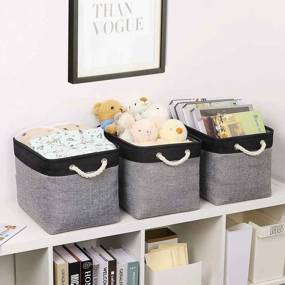 KEEP YOUR HOME ORGANIZED - Are you stil in troubled by clothes, books and toys often spread all around or Clothes, shoes, hats, sheets or some small items etc too much to be classified ? organizer bins could help you declutter and free up your physical spac. save your housework time, Creating warm room for each family. KEEP YOUR HOME ORGANIZED - Are you stil in troubled by clothes, books and toys often spread all around or Clothes, shoes, hats, sheets or some small items etc too much to be classified ? organizer bins could help you declutter and free up your physical spac. save your housework time, Creating warm room for each family. STORAGE BIN & PROFESSIONALLY & PRACTICAL - 16Lx12Wx12H; cube storage bins provide a solution to most needs: organizing and storing baby products,clothes,shoes,kid’s toys,pet products, toiletry storage, laundry,towel, blanket, bedsheet, sport gears, tissue,hats, scarves,socks,keys or other small items.can be used in bedroom, living room, study room,rest room,bathroom, kitchen,office,shelf, closet and cabinets.excellent choice for keeping your space nice, tidy and organized DECORATIVE & ARTISTIC & GIFT BASKET - As a must have for home organization and storage, organizer bins is the perfect gift basket. 1.Bins had big storage capacity 2.Minimalist design and neutral grey color can be integrated into any home decorations and styles.3.Contrast other material, Fabric softer and Foldable, easy storage and clean, better use in home. 4.10 years + professional factory, Use better EVA fabric,, WARM YOUR HOME CARE TIP - Collapsible design for space saving, before use to get the wrinkles out the fabric storage bin: either stuff the fabric storage cubes with blankets and pillows for a few days and the baskets will take the shape , or steam iron them at low-heat setting; dusting the basket with a soft dry cloth is recommended. Spot clean with light soapy water when needed. Not recommended to machine wash for there are metal frame. CUSTOMER SERVICES & WARRANTY - organization bins provide better value and shopping convenience, Save your money, time and effort, We promise that we will provide best after-sale services and worry-free 12-month warranty. what are you wait for? closet organizers and storage bin is the best choice of Christmas/Halloween/Thanksgiving/ New born/Birthday/ Wedding gift for kids /wife /mother /husband /friends. Come on and Try the closet storage bin !